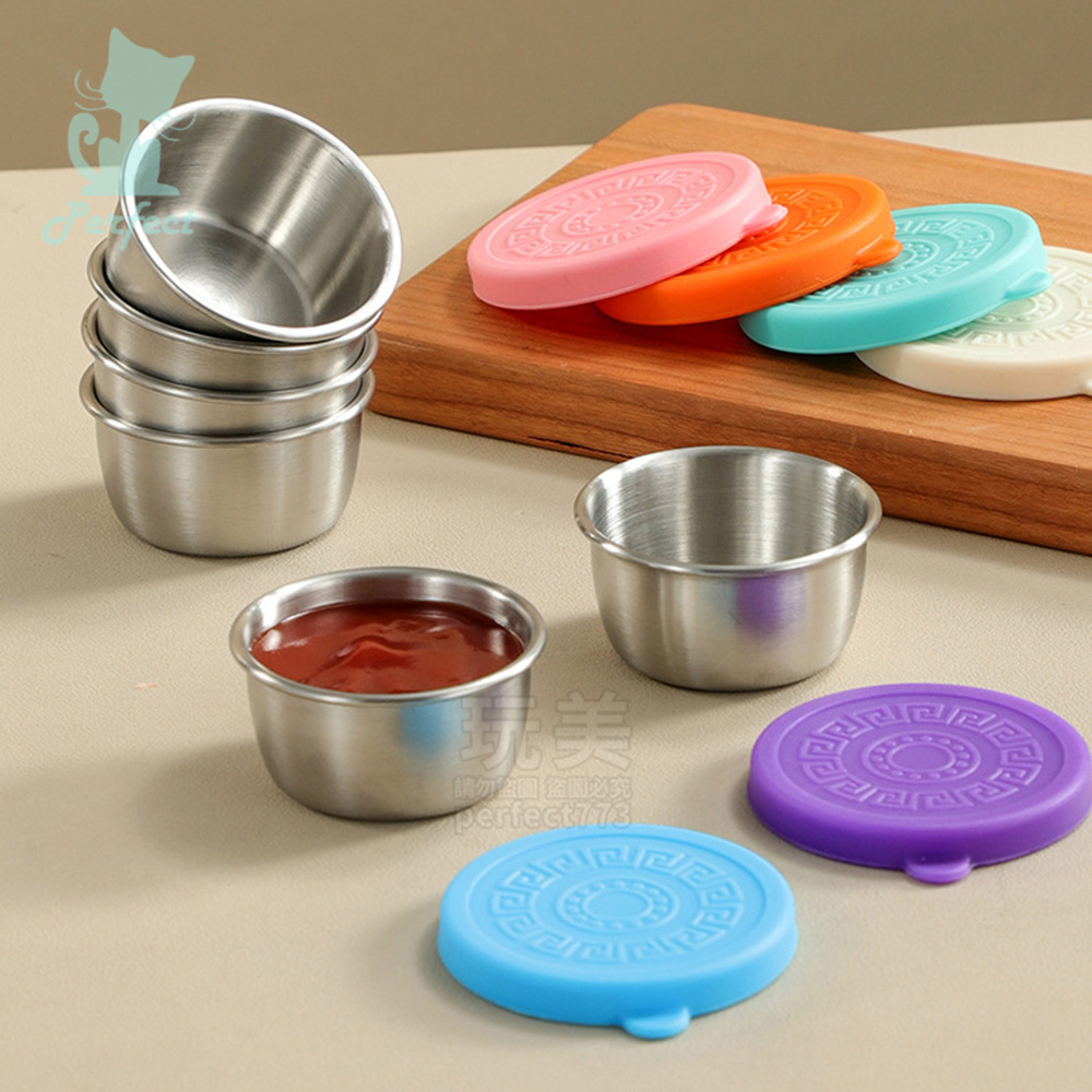帶蓋醬料盒 不鏽鋼醬料杯 沾醬盒 多彩醬料碗 蘸料碟 迷你分裝盒 沾醬杯 調味料杯 醬汁杯 布丁杯 玩美 771706