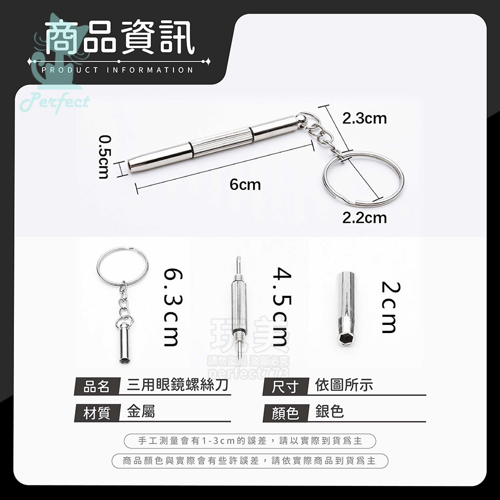 眼鏡螺絲起子 隨身螺絲刀 三合一螺絲刀 鑰匙圈螺絲刀 一字 十字 內六角 時鐘 手錶 眼鏡維修 玩美 771710