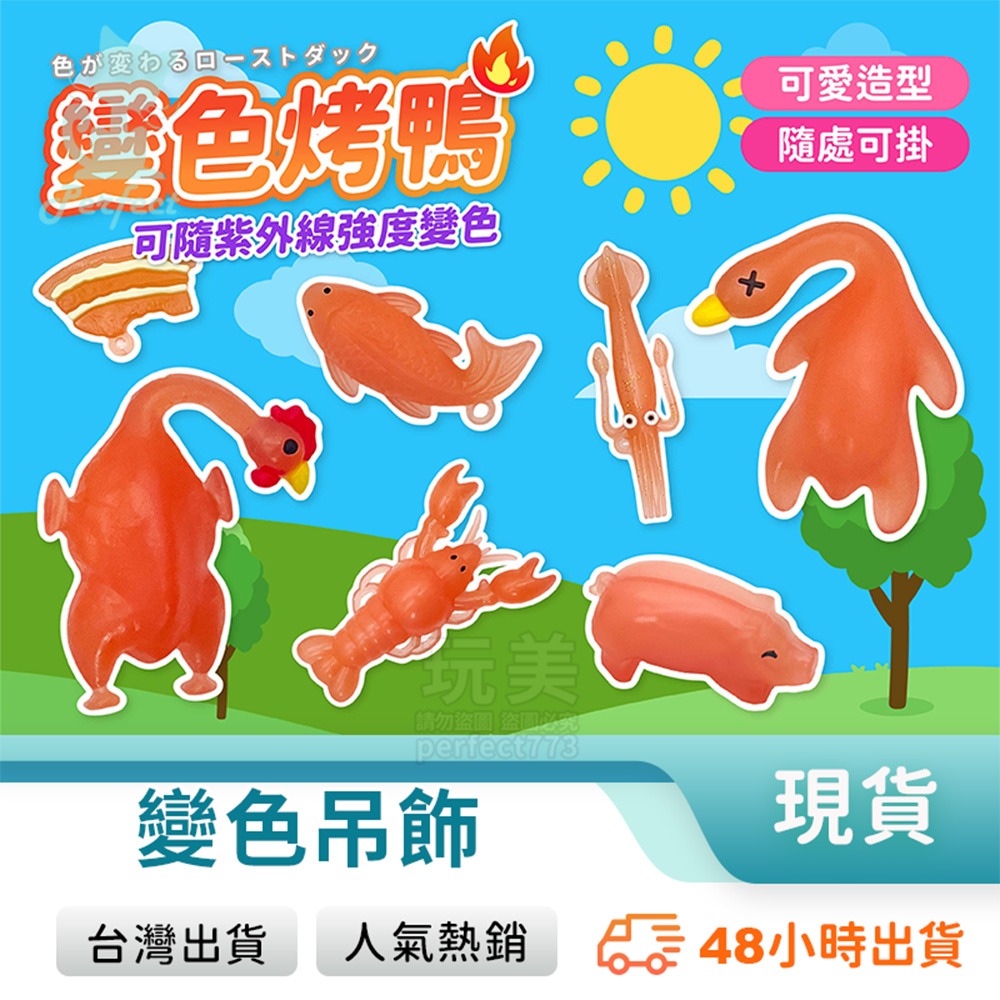 變色吊飾 紫外線鴨 車內裝飾 遇陽光變色 全系列 烤鴨 烤雞 烤龍蝦 烤豬 烤五花肉 烤魚 烤魷魚 玩美 771743