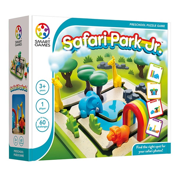 快來看看小動物的照片,找找看牠最喜歡在彩虹動物園的哪個位置拍照呢?立體動物造型與不同形狀的底座,方便幼兒抓握並兼具形狀對應的遊戲功能;遊戲軌道上經過特殊設計,讓每一款動物有不同的路線限制,增加遊戲的挑戰性,透過動物與公園情境的照片當作題卡設計,提供幼兒前視圖的經驗,提升手眼協調操作技巧與空間位置概念,增進策略思考與解決問題能力。
