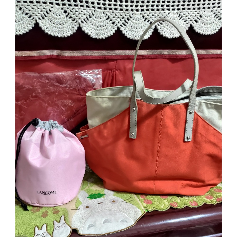 如圖所示請可一一放大檢查哦,蘭蔻高22厚16公分賣140,托特包高28上長40下長28厚13公分紅圈處有瑕有點退色所以粗背好故也便宜賣650,60號,主臥三層櫃