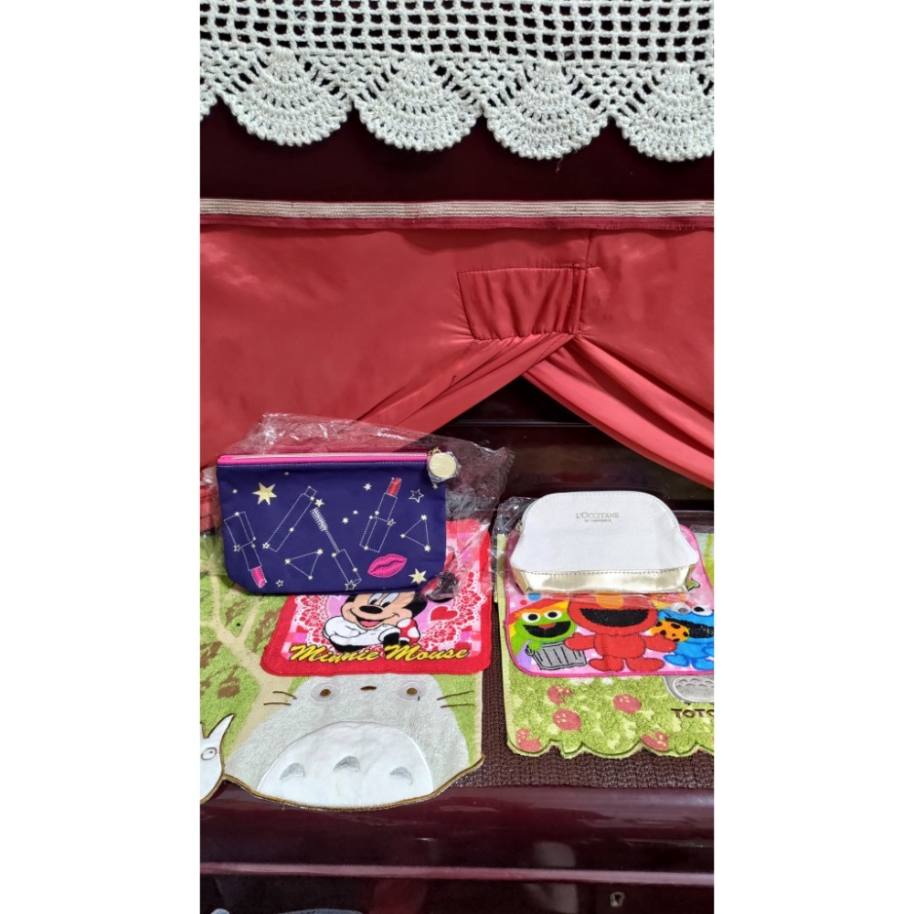 歐舒丹米色帆布和金色洗漱化妝包 藍色雅詩蘭黛化妝包 植村秀