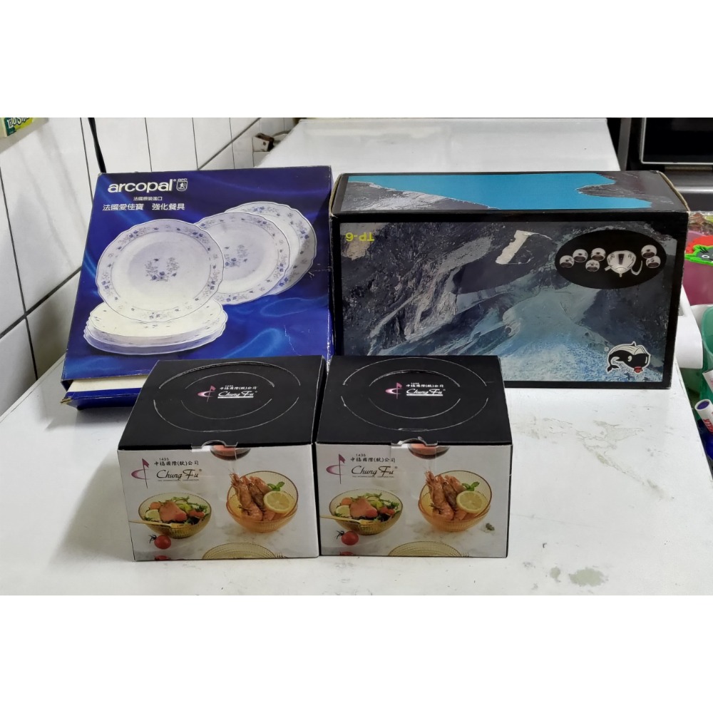 商品皆實拍,因是二手所以請圖一一放大檢查,有問題都歡迎聊聊哦,康寧一組賣100直徑13高6公分,德國3平盤直徑24公分3淺盤直徑23公分賣600,茶組賣500,三樓右櫃,80號