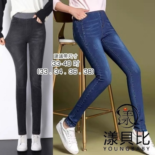 漾貝比中大碼【9154894】舒服羅紋鬆緊高彈力牛仔顯瘦鉛筆褲.共2色 (33-40)
