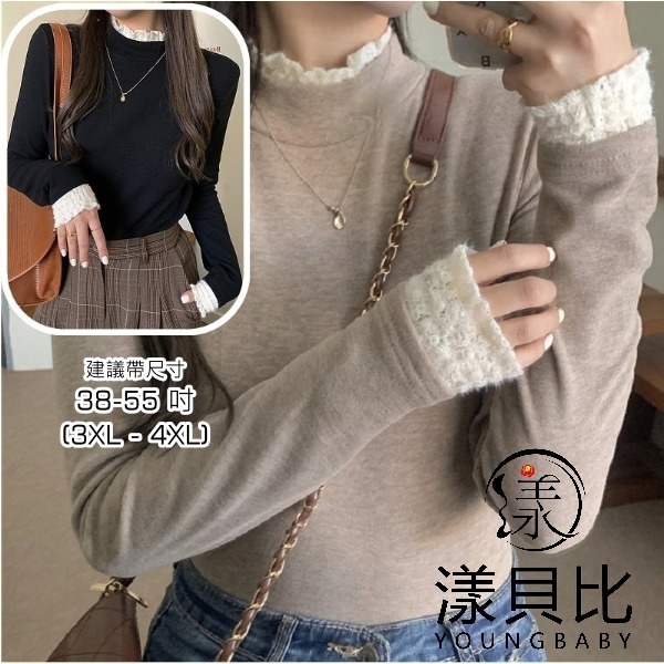 漾貝比中大碼【9154975】領口袖口拼接花邊蕾絲德絨保暖內搭上衣.共2色 (38-55)