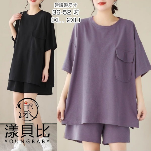 漾貝比【9155059】中大尺碼女裝 圓領開叉大口袋運動休閒上衣褲子套裝.共2色