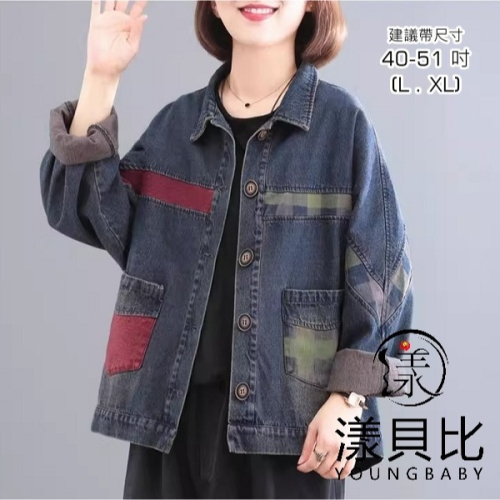 漾貝比【9155234】中大尺碼女裝 撞色口袋復古磨白牛仔外套.藍(40-51)
