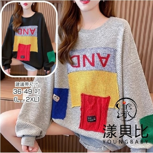 漾貝比【9155263】中大尺碼女裝 圓領大小彩色針織貼布立體條紋織衣棉T(36-49)