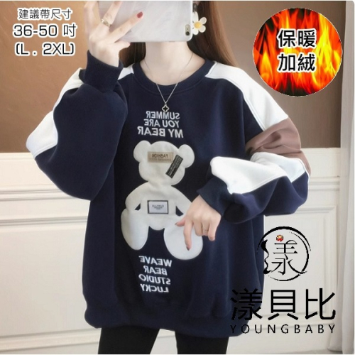 | 【9155344】貼布泰迪熊三拼色袖加絨加厚T | ||