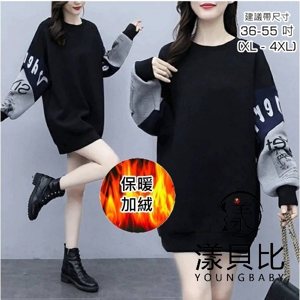 | 【9155354】圓領袖拼接英文印花加絨加厚中長版上衣 | |||