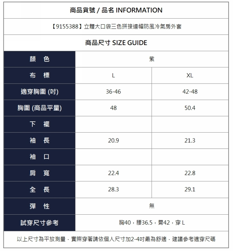 漾貝比【9155388】中大尺碼女裝 立體大口袋三色拼接連帽防風冷氣房外套 (36-48)