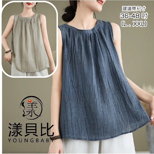 漾貝比【9155433】中大尺碼女裝 復古圓領褶皺縈麻寬鬆造型背心.共2色 (36-48)