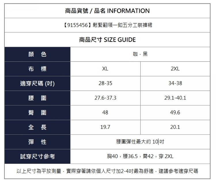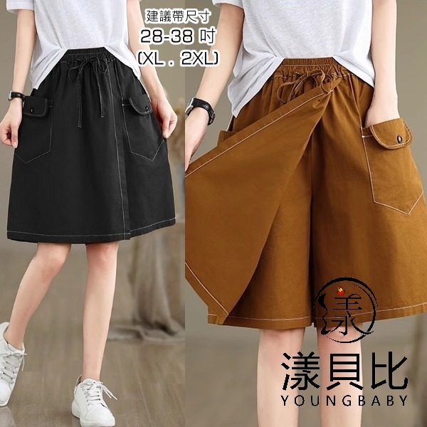 漾貝比【9155456】中大尺碼女裝 鬆緊翻領一釦五分工裝褲裙.共2色 (28-38)