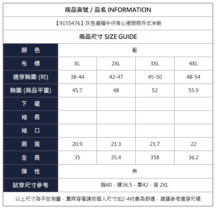 漾貝比【9155476】中大尺碼女裝 灰色連帽牛仔背心裙假兩件式洋裝 (38-54)