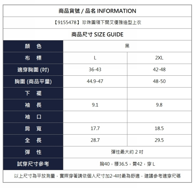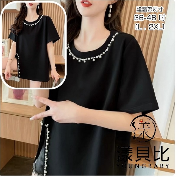 漾貝比【9155478】中大尺碼女裝 珍珠圓領下開叉優雅造型上衣 (36-48)