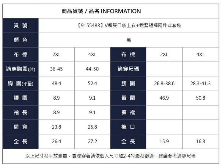 漾貝比【9155483】中大尺碼女裝 V領雙口袋上衣+鬆緊短褲兩件式套裝 (36-50)