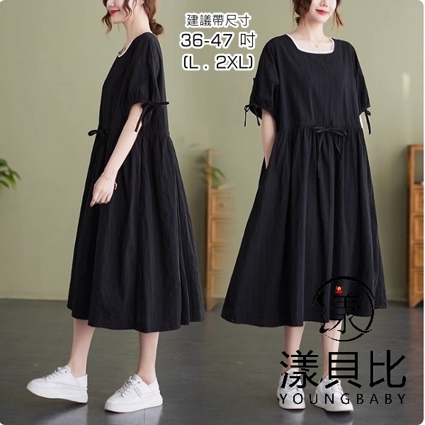 漾貝比【9155484】中大尺碼女裝 白色小花邊方領綁帶洋裝 (36-47)