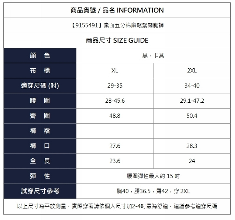 漾貝比【9155491】中大尺碼女裝 素面五分棉麻鬆緊闊腿褲.共2色 (29-40)