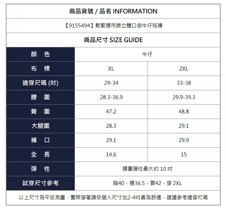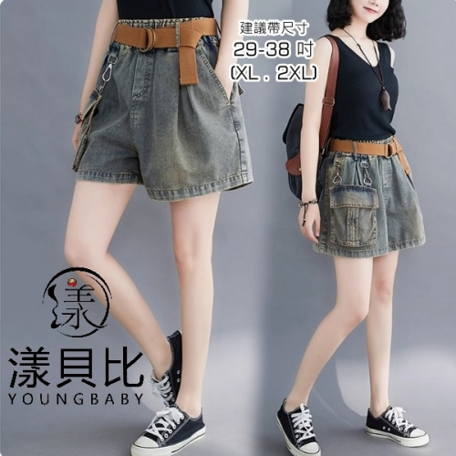 漾貝比【9155494】中大尺碼女裝 鬆緊腰吊飾立體口袋牛仔短褲 (29-38)