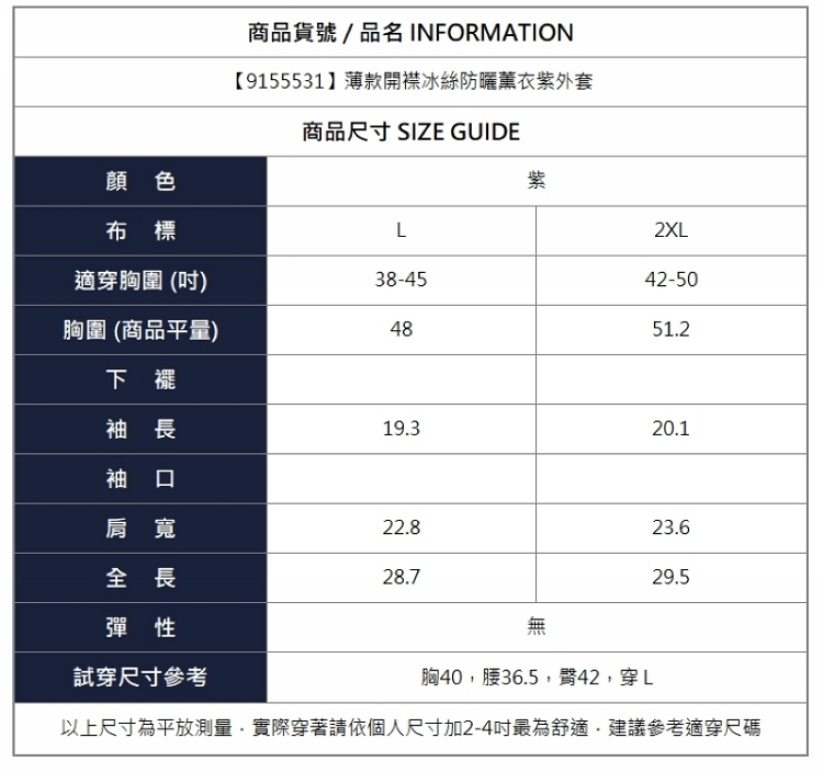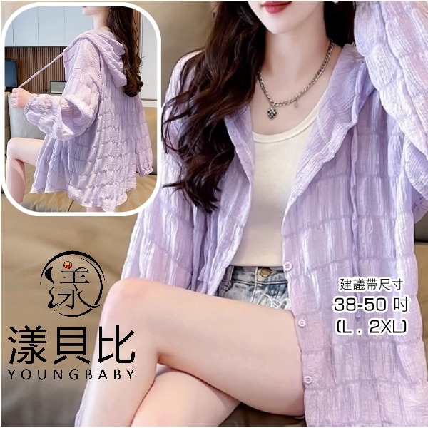 漾貝比【9155531】中大尺碼女裝 薄款開襟冰絲防曬薰衣紫外套 (38-50)