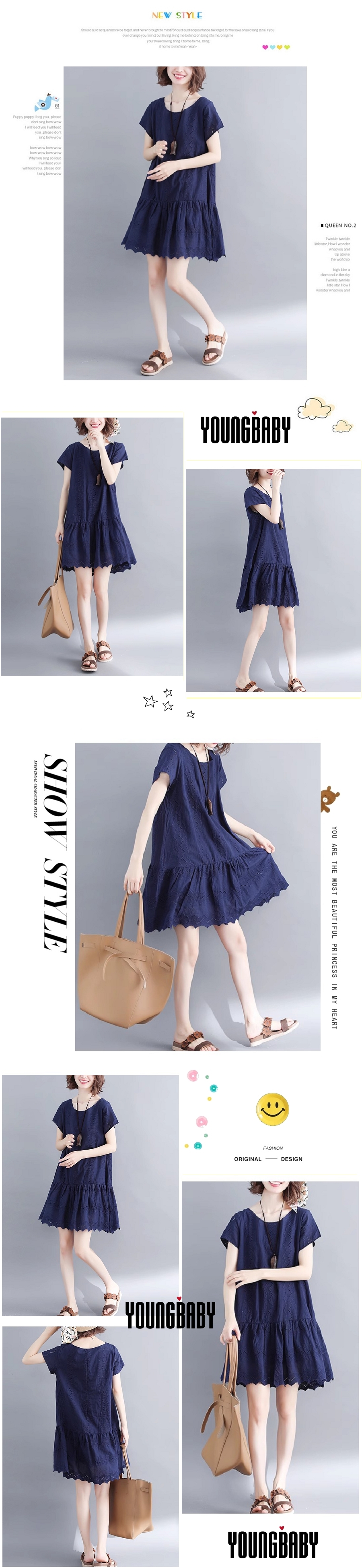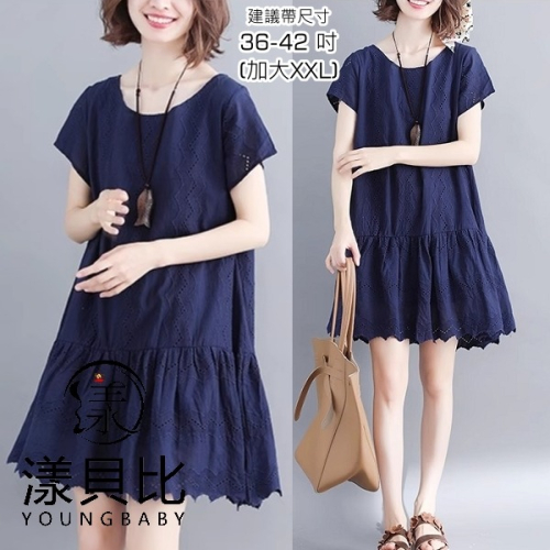 漾貝比【9155544】中大尺碼女裝 洞洞縷空拼接裙襬洋裝.藏青(36-42)