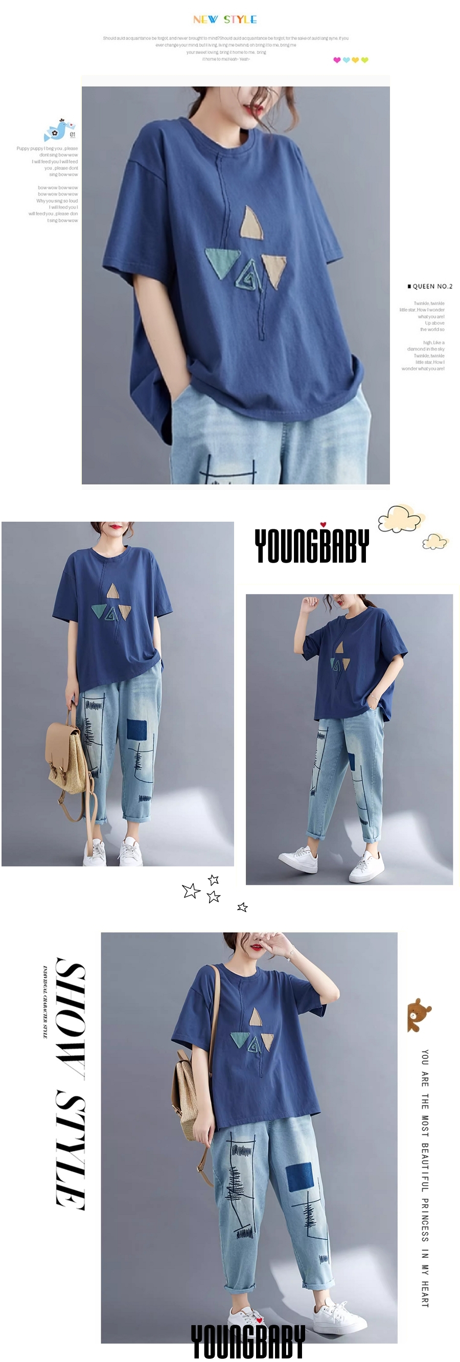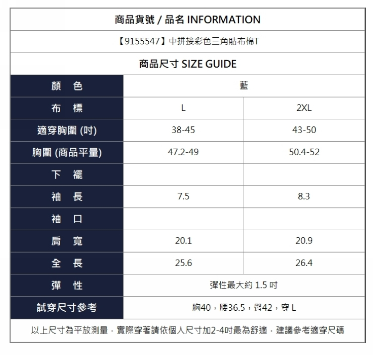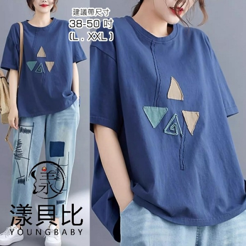 漾貝比【9155547】中大尺碼女裝 拼接彩色三角貼布棉T.藍(38-50)