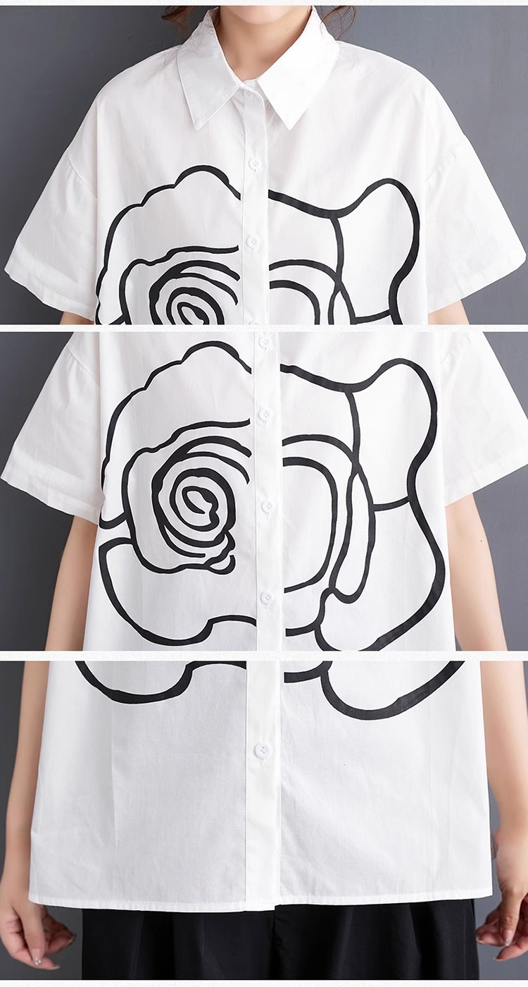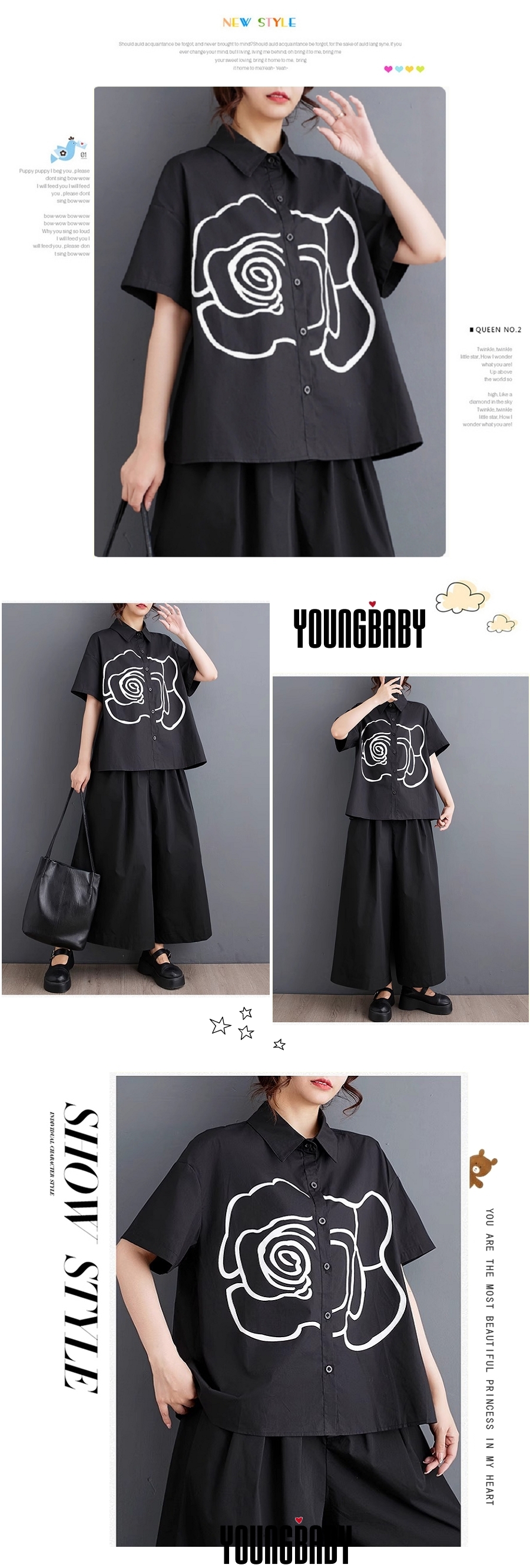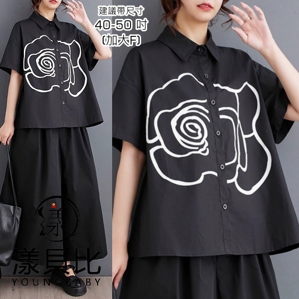 漾貝比【9155551】中大尺碼女裝 簡約盛開玫瑰開釦襯衫.黑(40-50)