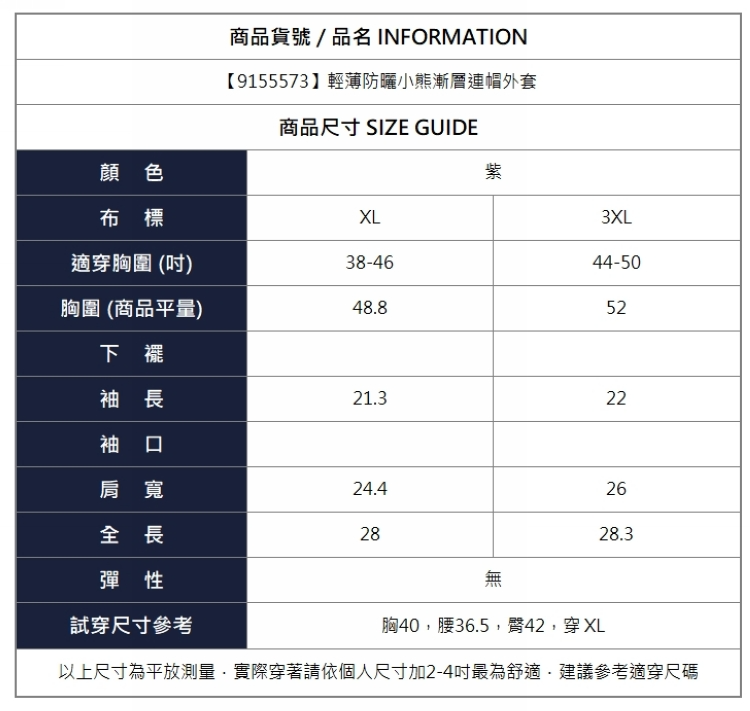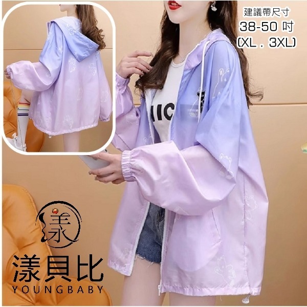 漾貝比【9155573】中大尺碼女裝 輕薄防曬小熊漸層連帽外套.紫(38-50)
