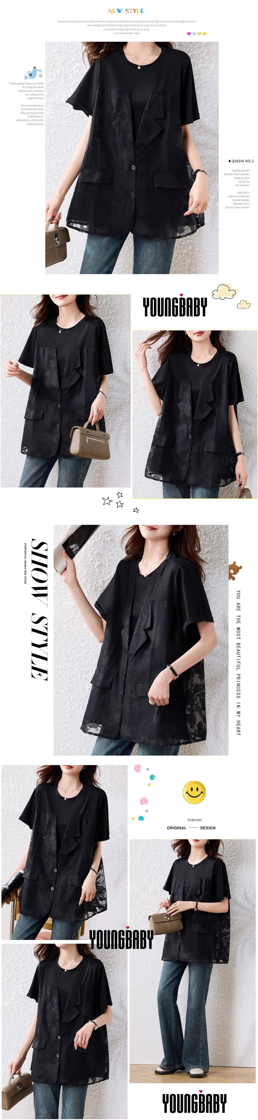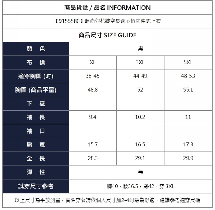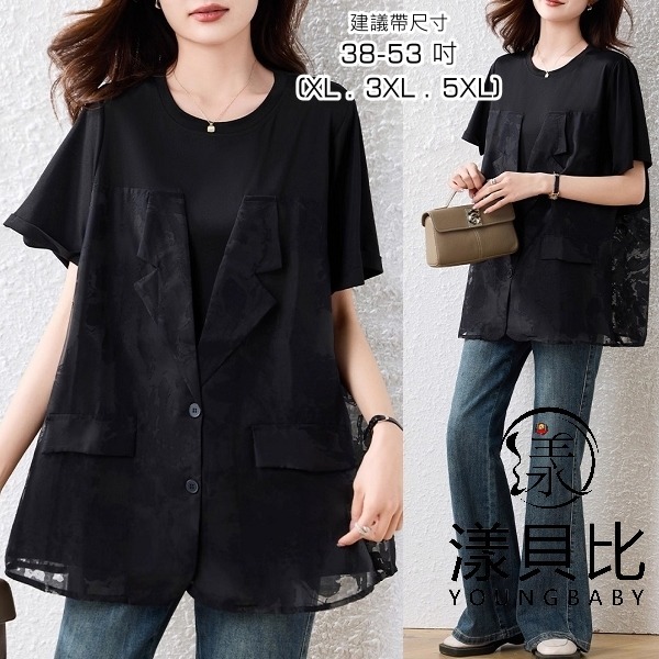 漾貝比【9155580】中大尺碼女裝 時尚勾花縷空長背心假兩件式上衣(38-53)