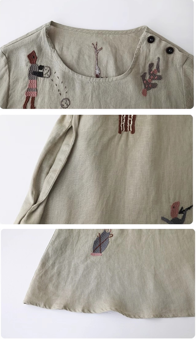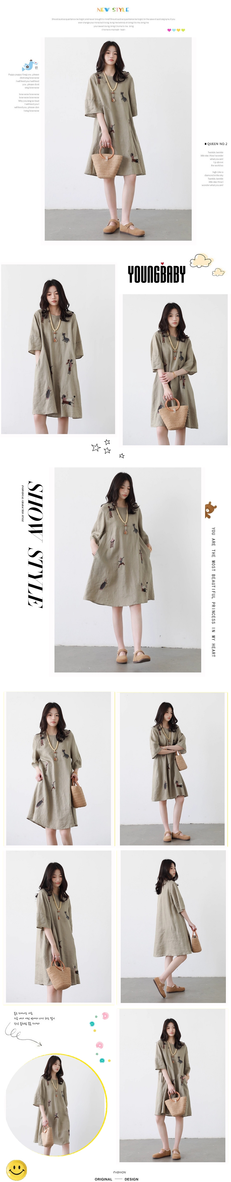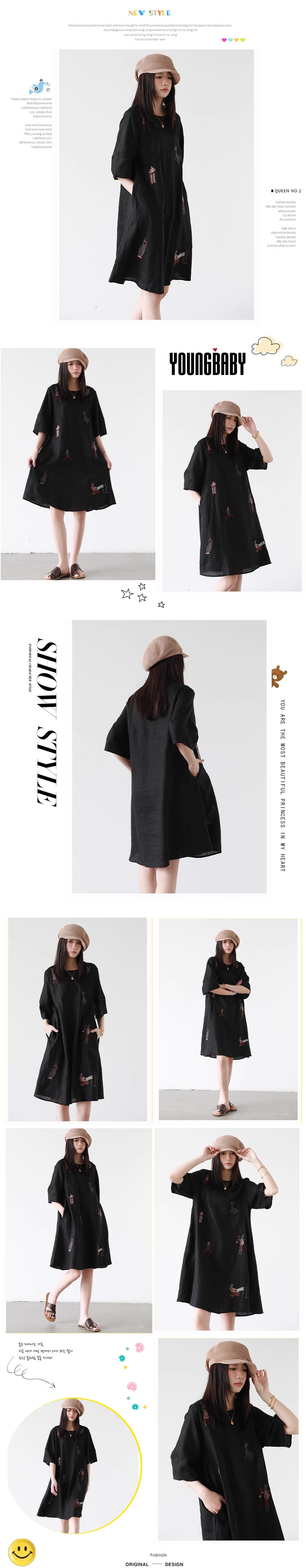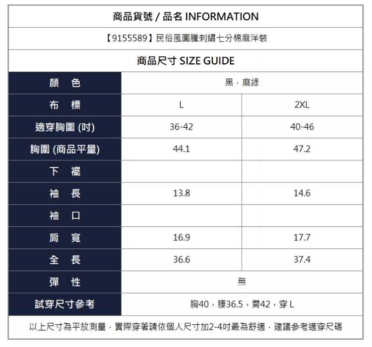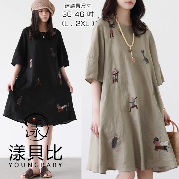 漾貝比【9155589】中大尺碼女裝 民俗風圖騰刺繡七分棉麻洋裝.共2色(36-46)