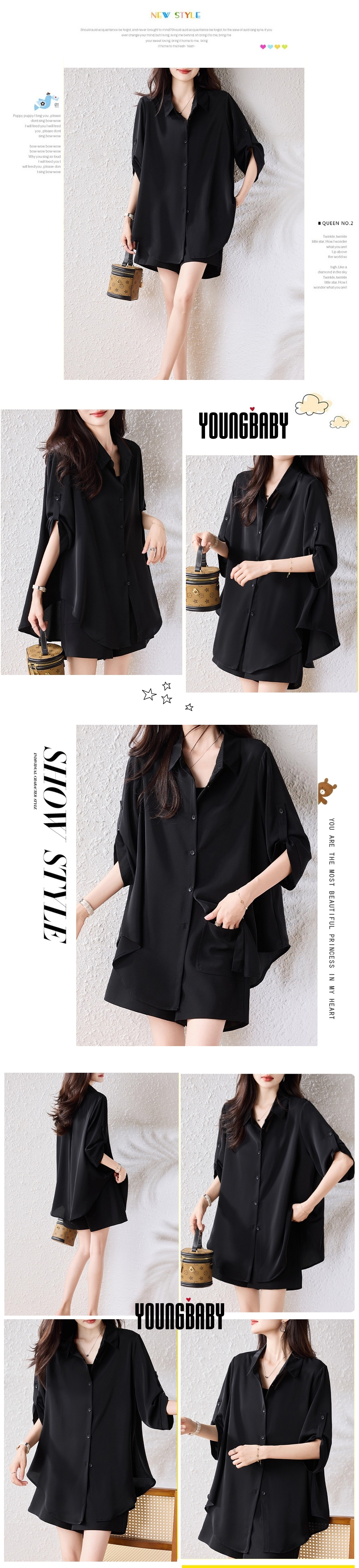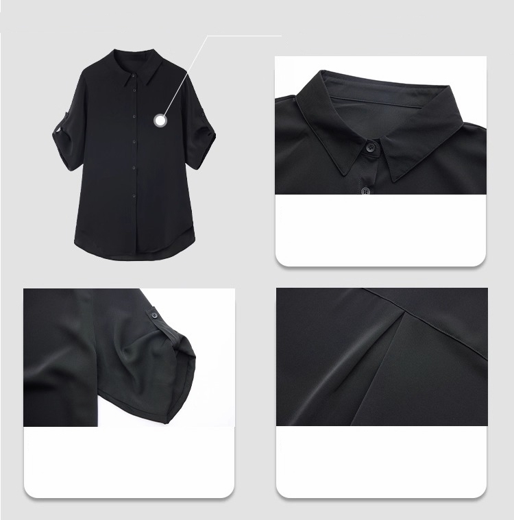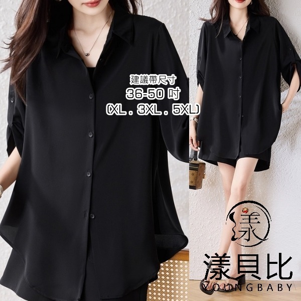 漾貝比【9155609】中大尺碼女裝 反折袖排釦雪紡襯衫.黑(36-50)