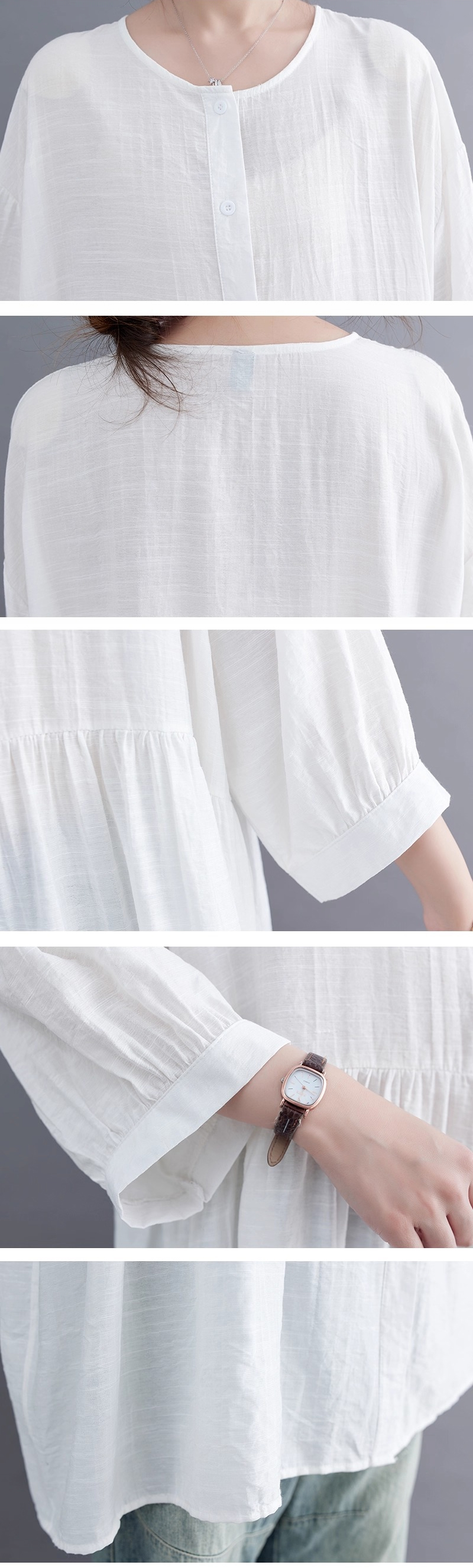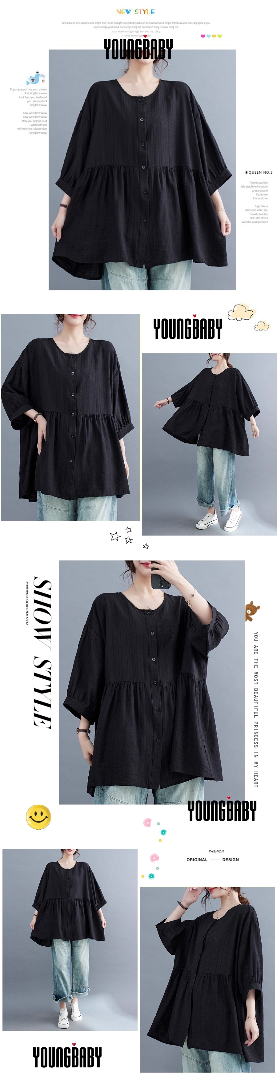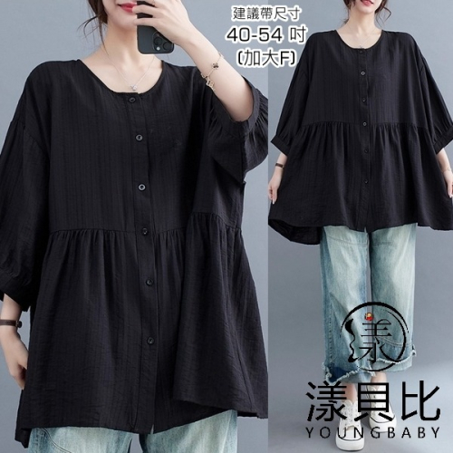 漾貝比【9155610】中大尺碼女裝 圓領下襬拼接排釦娃娃上衣.黑(40-54)