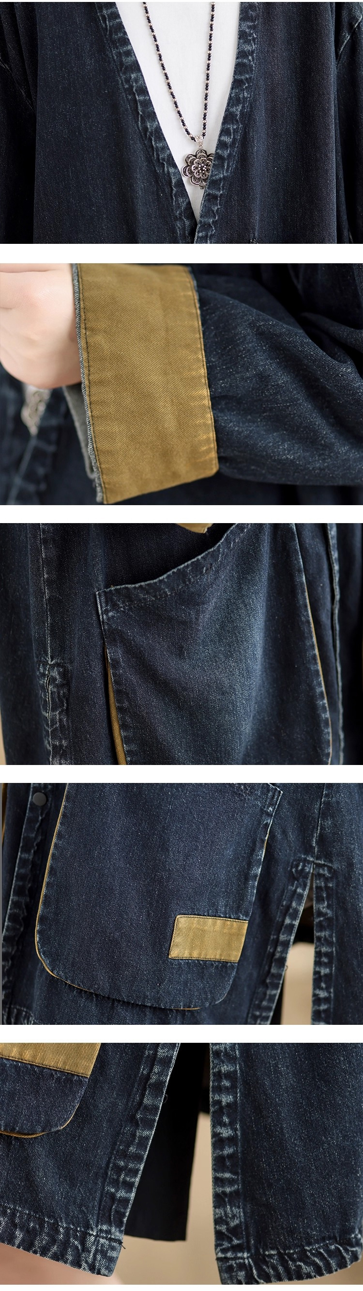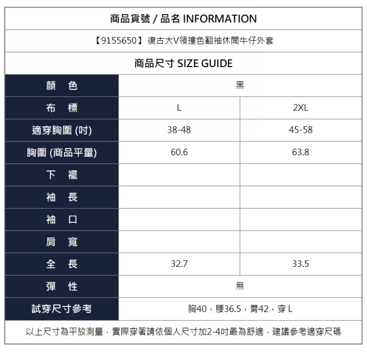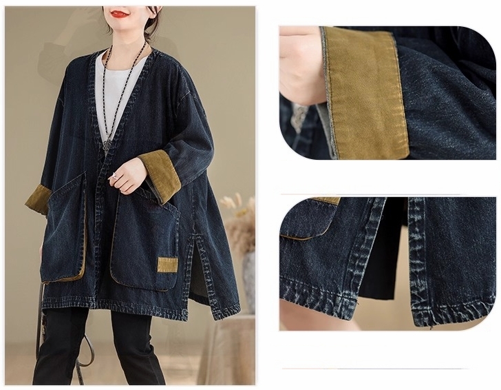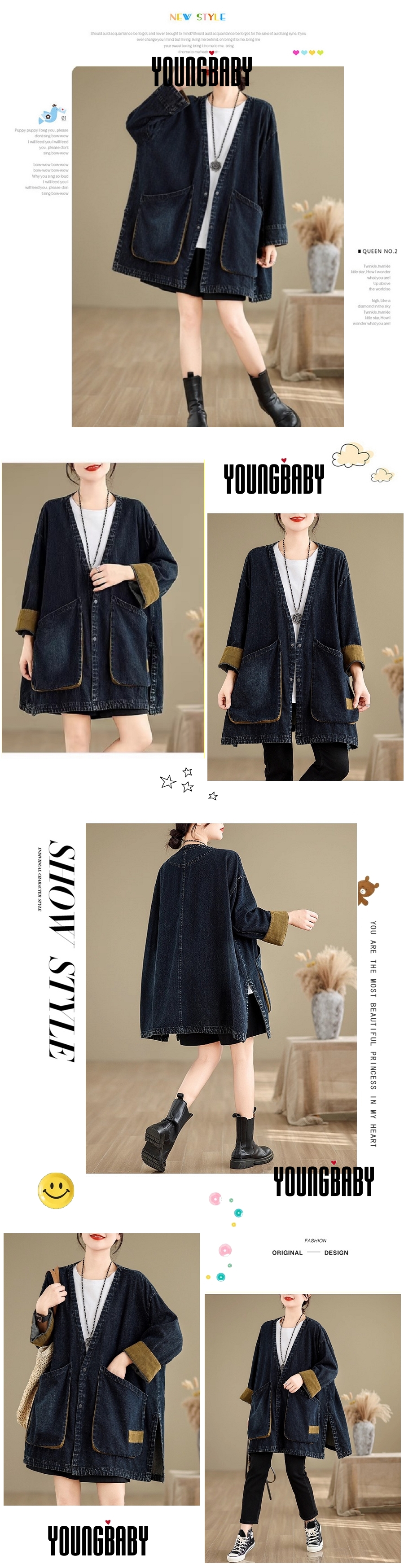 漾貝比【9155650】中大尺碼女裝 復古大V領撞色翻袖休閒牛仔外套(38-58)