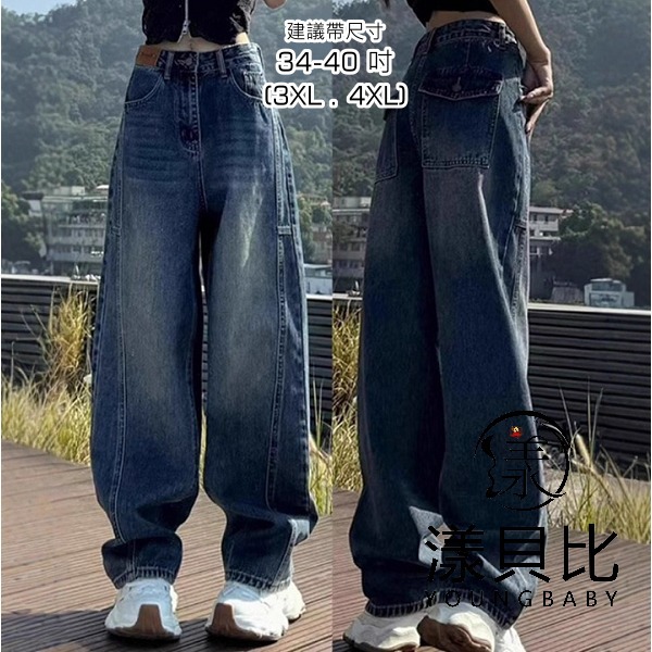 漾貝比【9155672】中大尺碼女裝 帥氣有蓋口袋直筒鐮刀牛仔長褲(34-40)