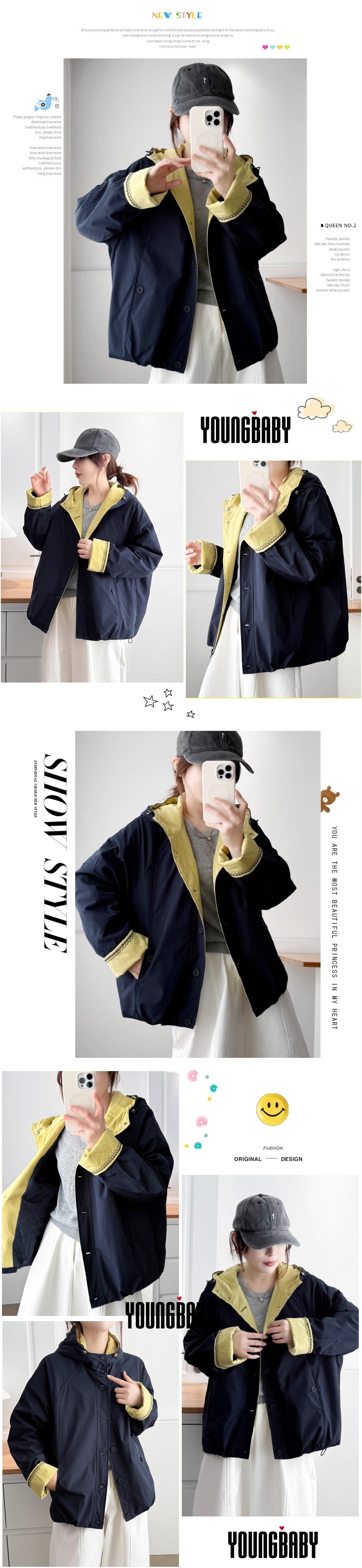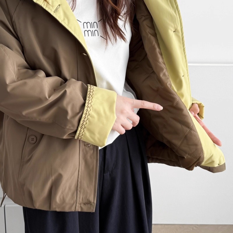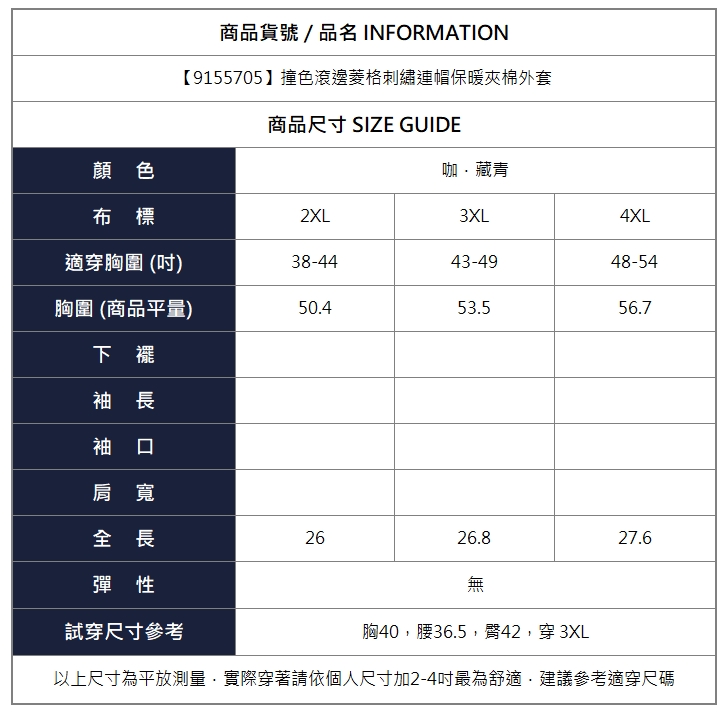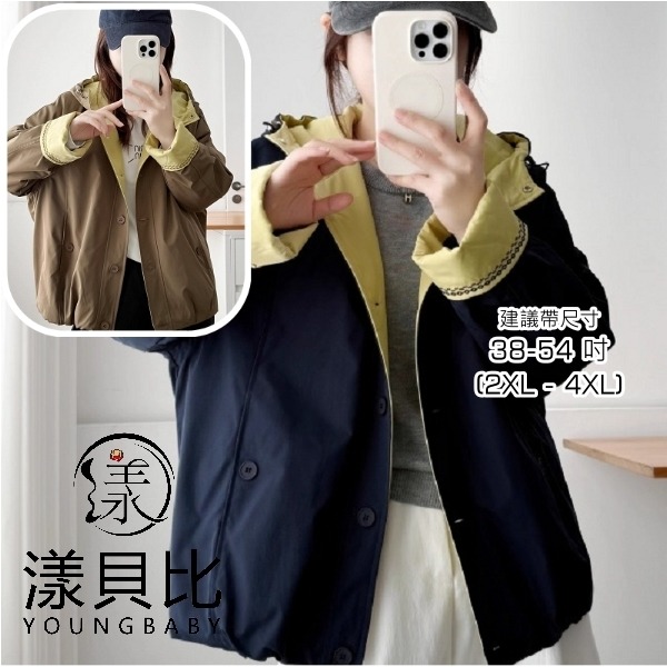漾貝比【9155705】中大尺碼女裝 撞色滾邊菱格刺繡連帽保暖夾棉外套 (38-54)