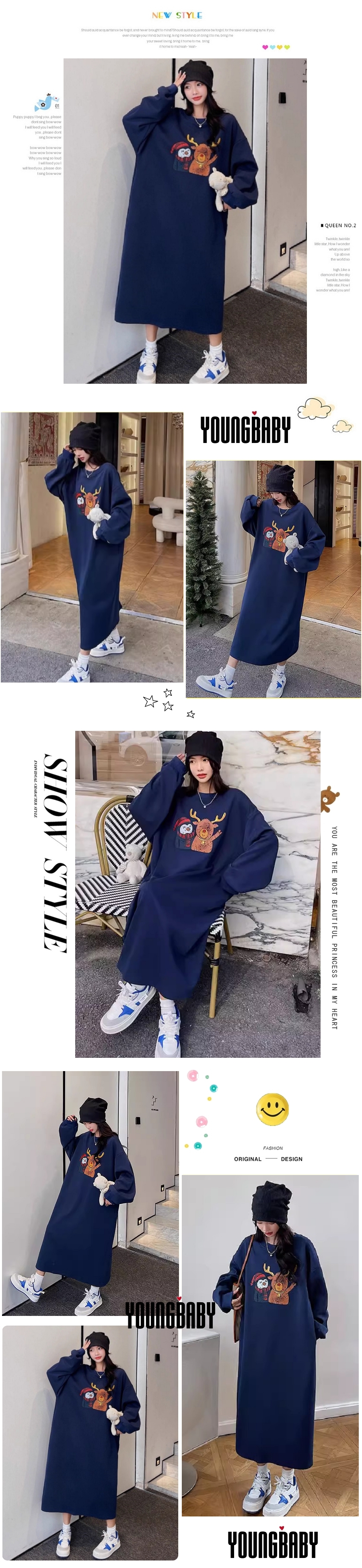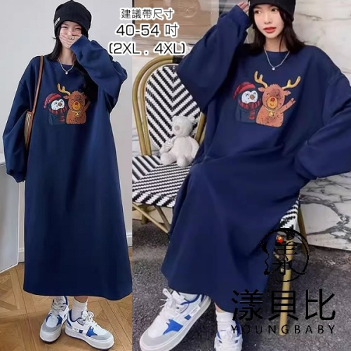漾貝比【9155709】中大尺碼女裝 馴鹿企鵝好朋友加絨加厚長洋裝(40-54)