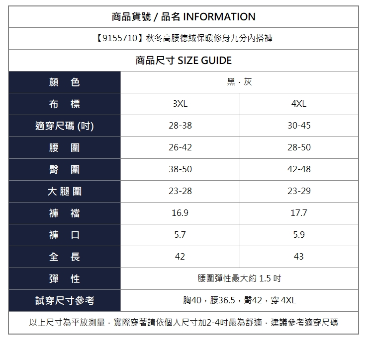 漾貝比【9155710】中大尺碼女裝 秋冬高腰德絨保暖修身九分內搭褲 (28-45)