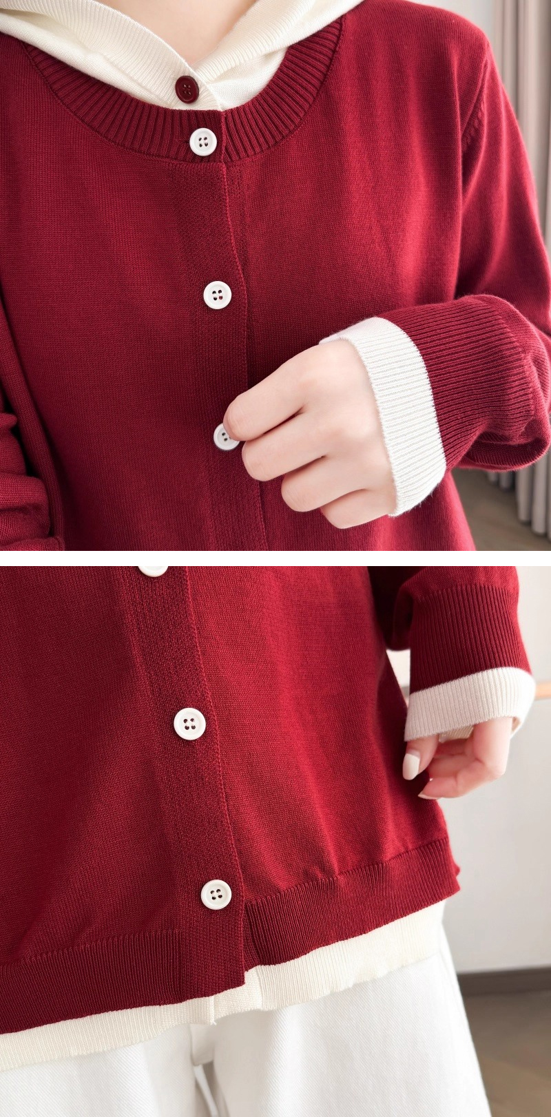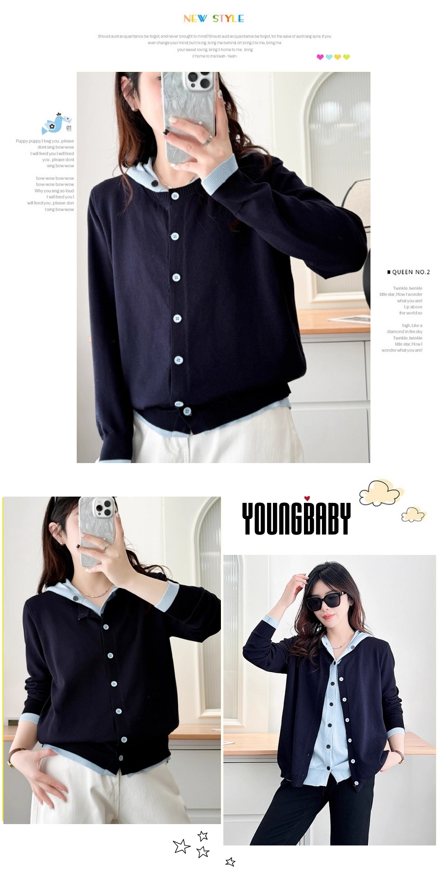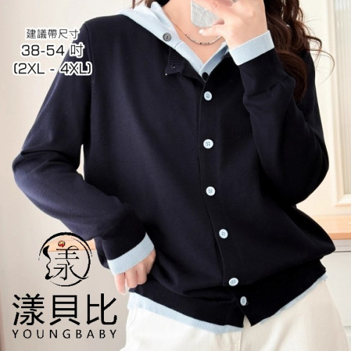 漾貝比【9155716】中大尺碼女裝 排釦連帽撞色假兩件式毛衣.藍 (38-54)
