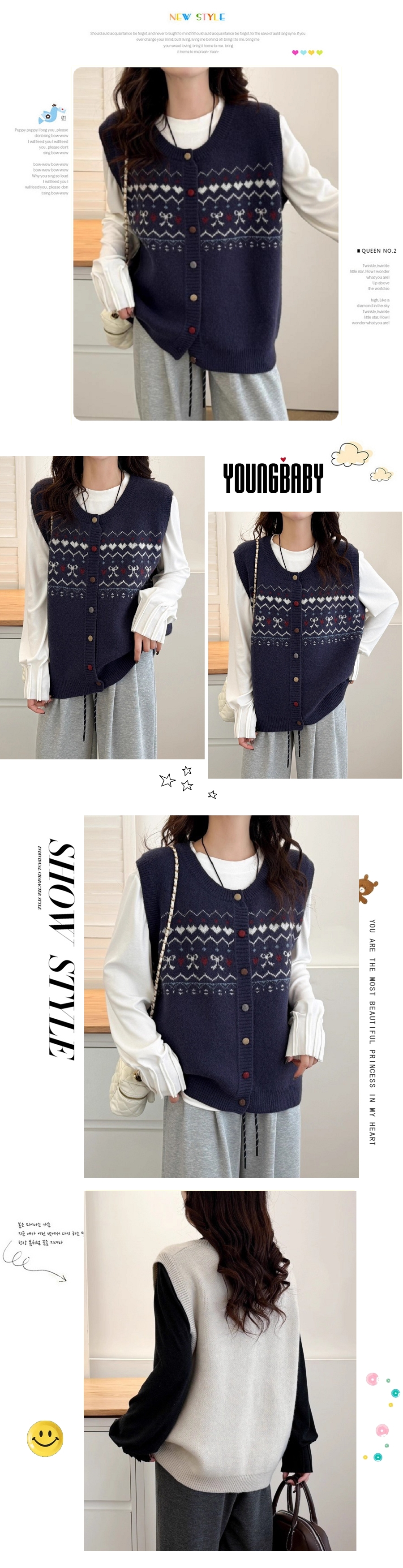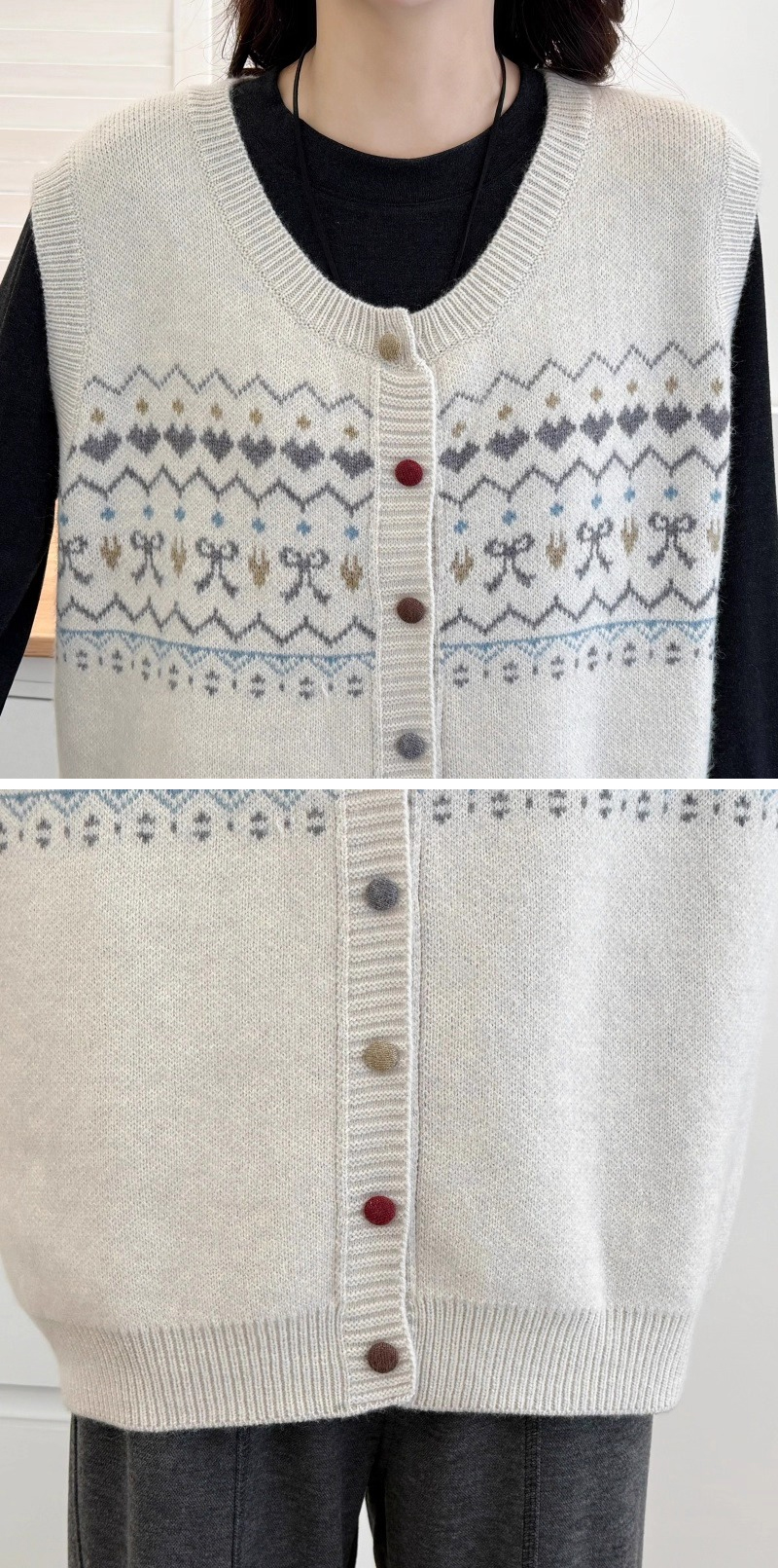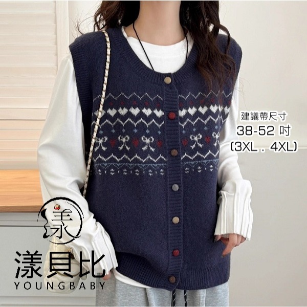 漾貝比【9155762】中大尺碼女裝 法式復古愛心蝴蝶結毛織保暖背心 (38-52)