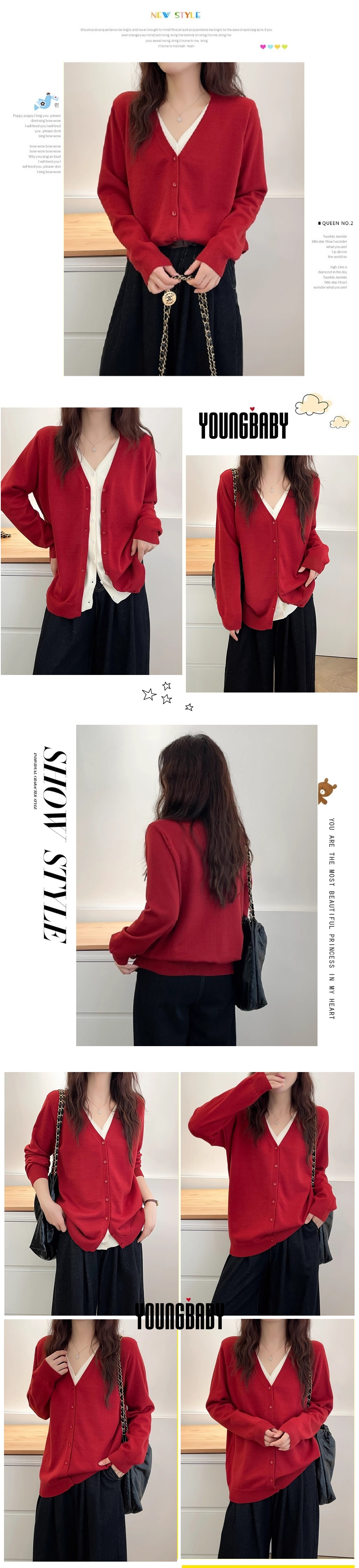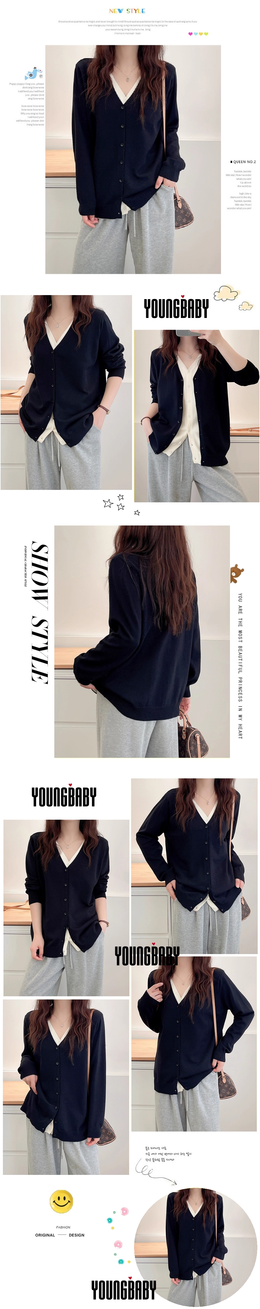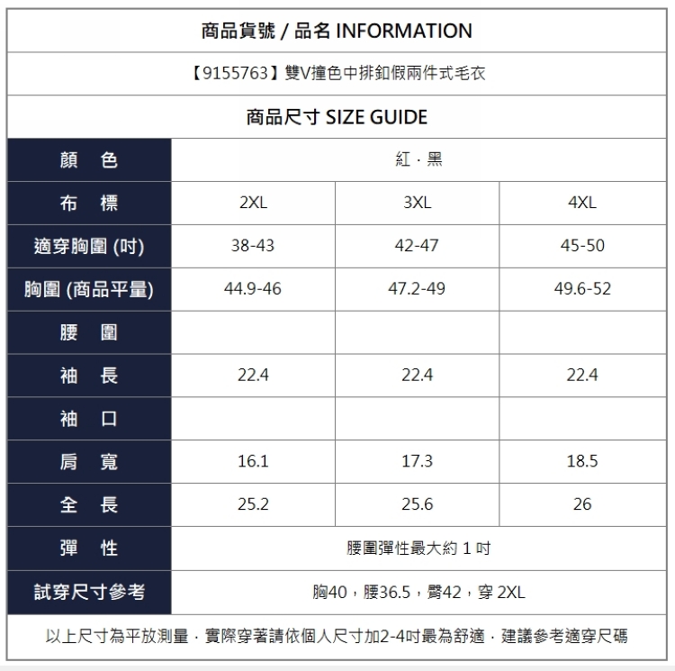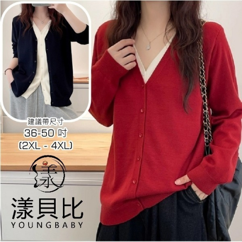 漾貝比【9155763】中大尺碼女裝 雙V撞色中排釦假兩件式毛衣.共2色 (38-50)