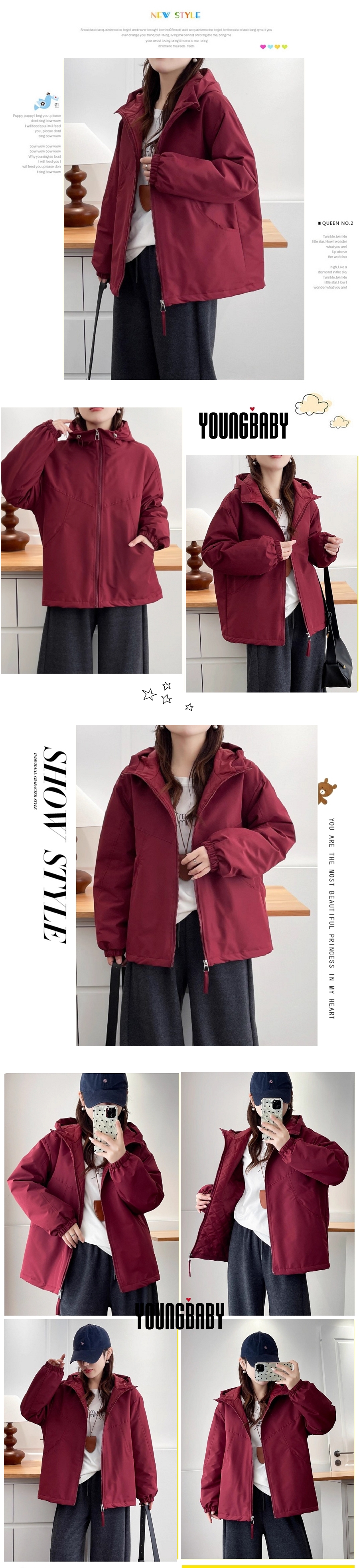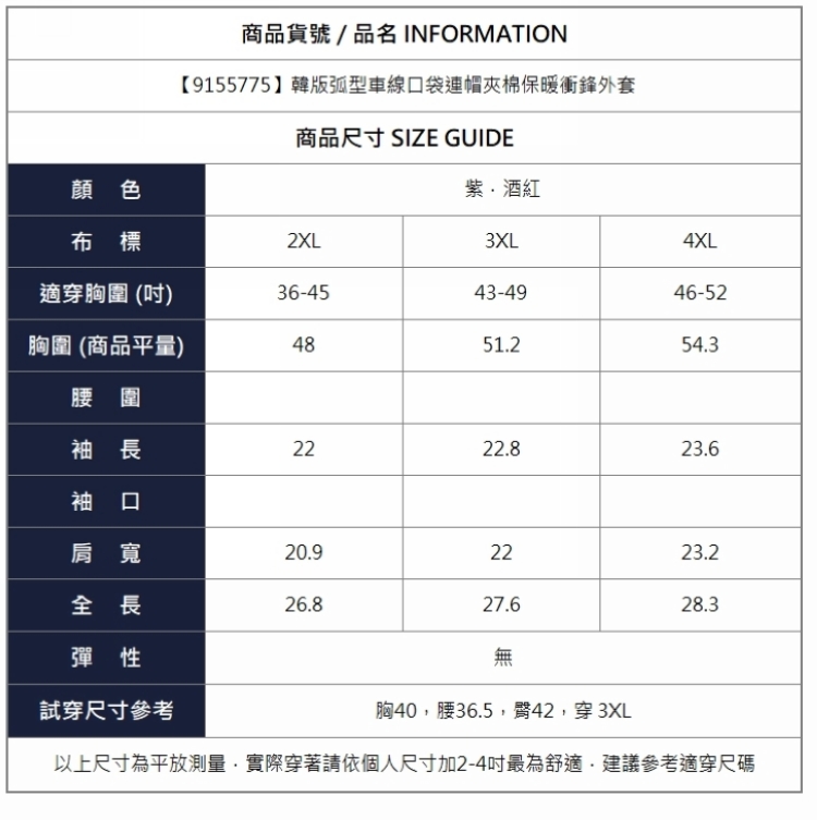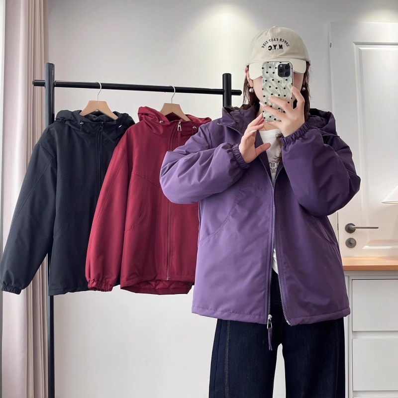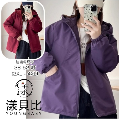 漾貝比【9155775】中大尺碼女裝 韓版弧型車線口袋連帽夾棉保暖衝鋒外套.共2色 (36-52)