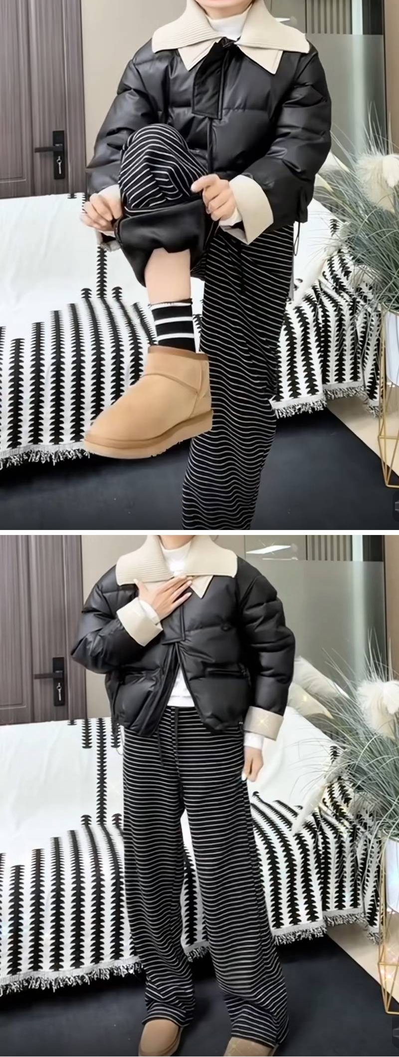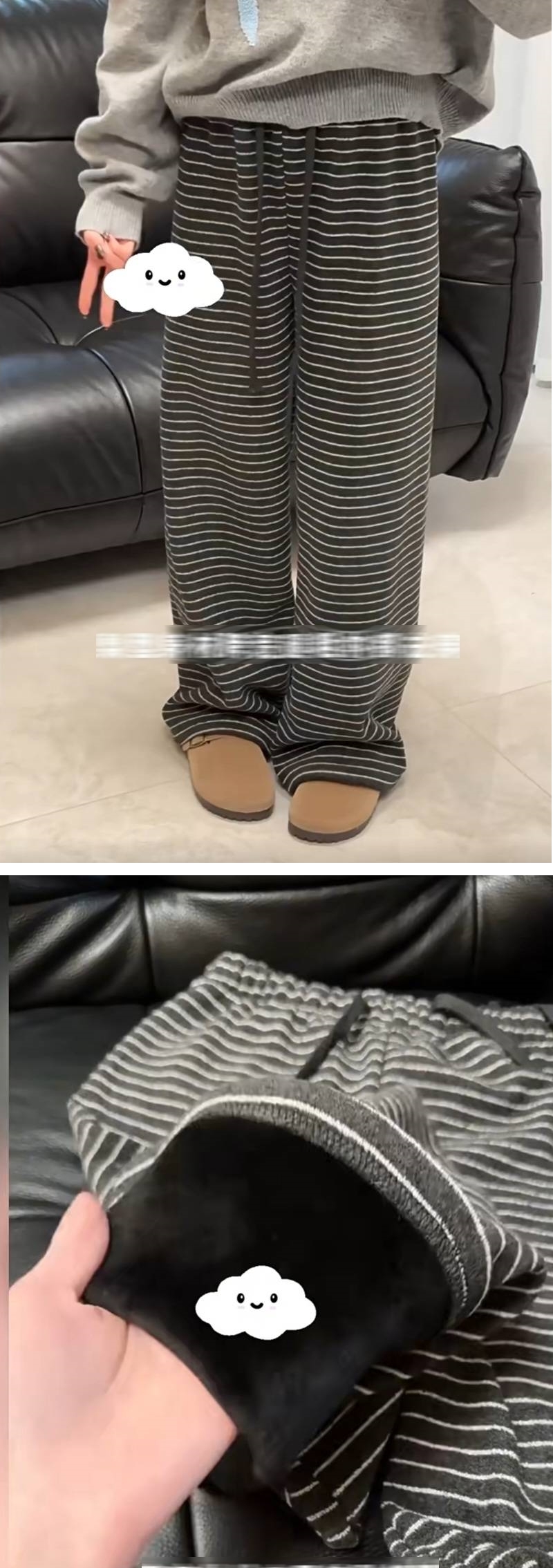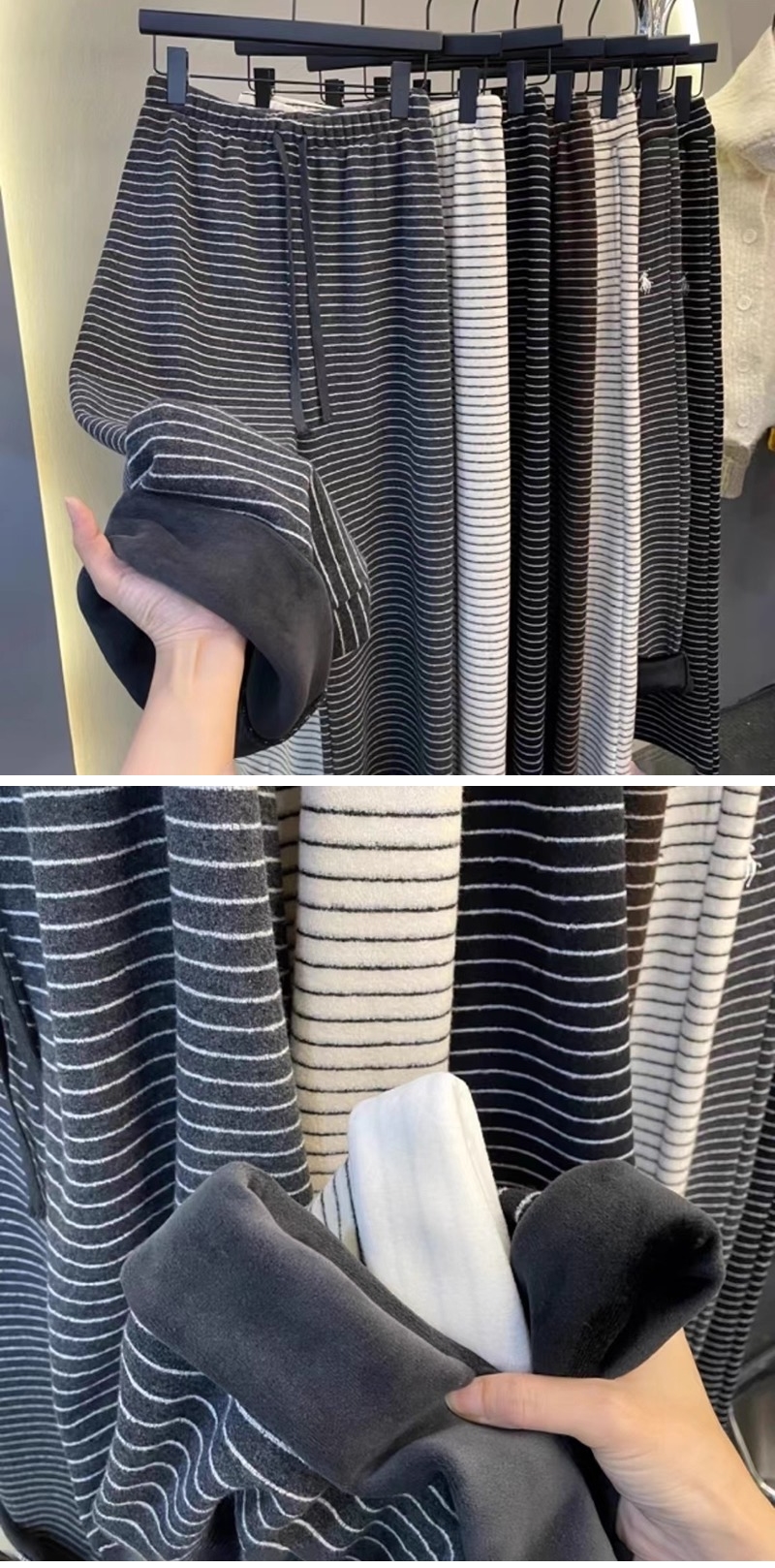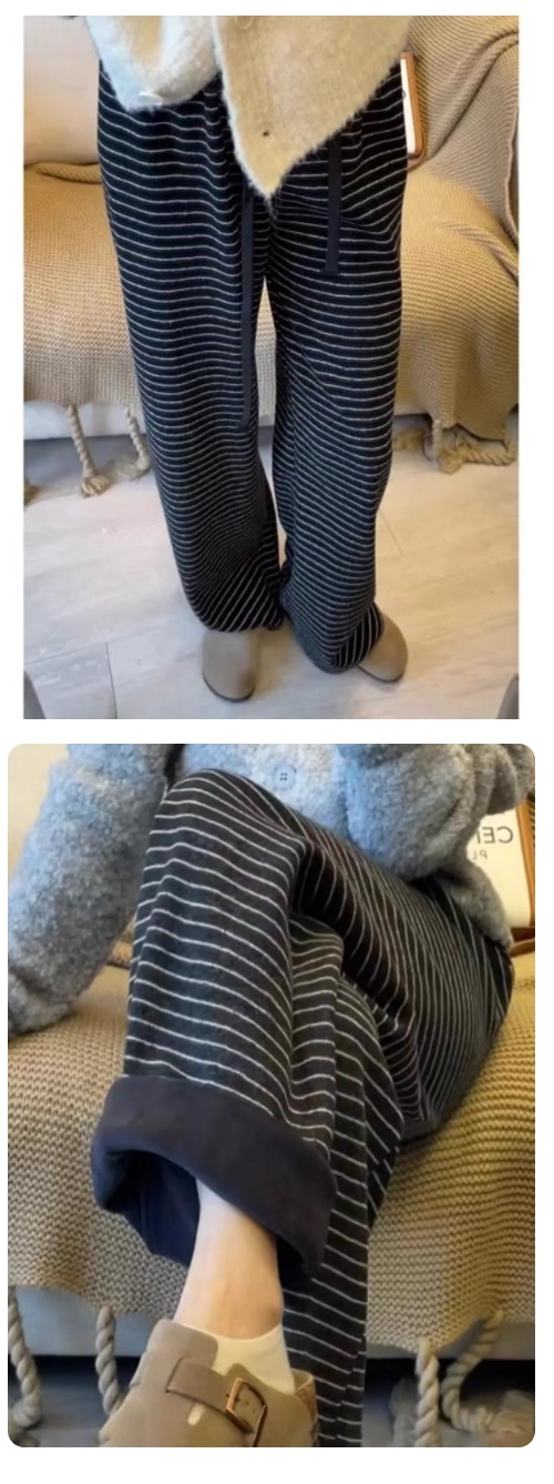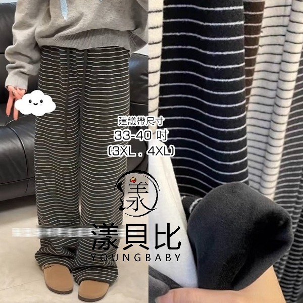 漾貝比【9155783】中大尺碼女裝 韓版復古條紋加絨保暖直筒闊腿褲 (33-40)