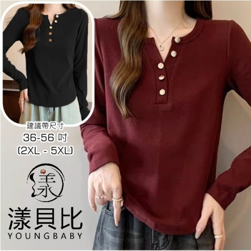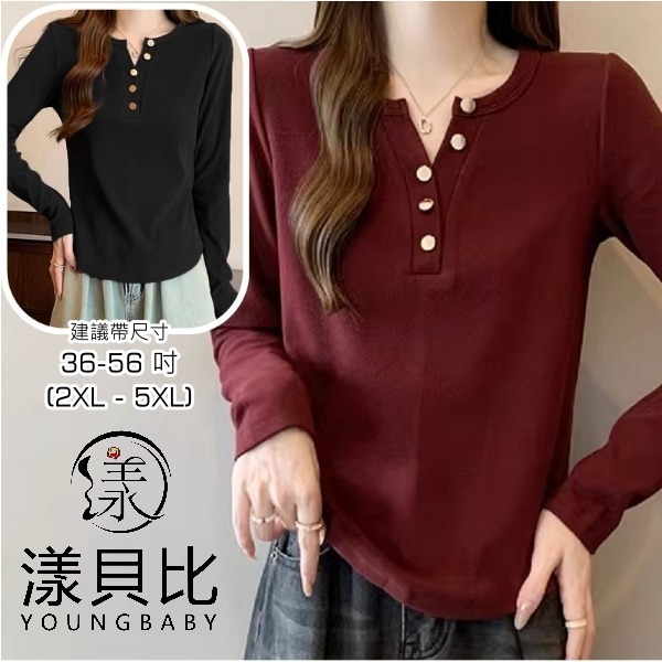 漾貝比【9155788】中大尺碼女裝 圓領Y領開釦純色顯瘦T.共2色(36-56)