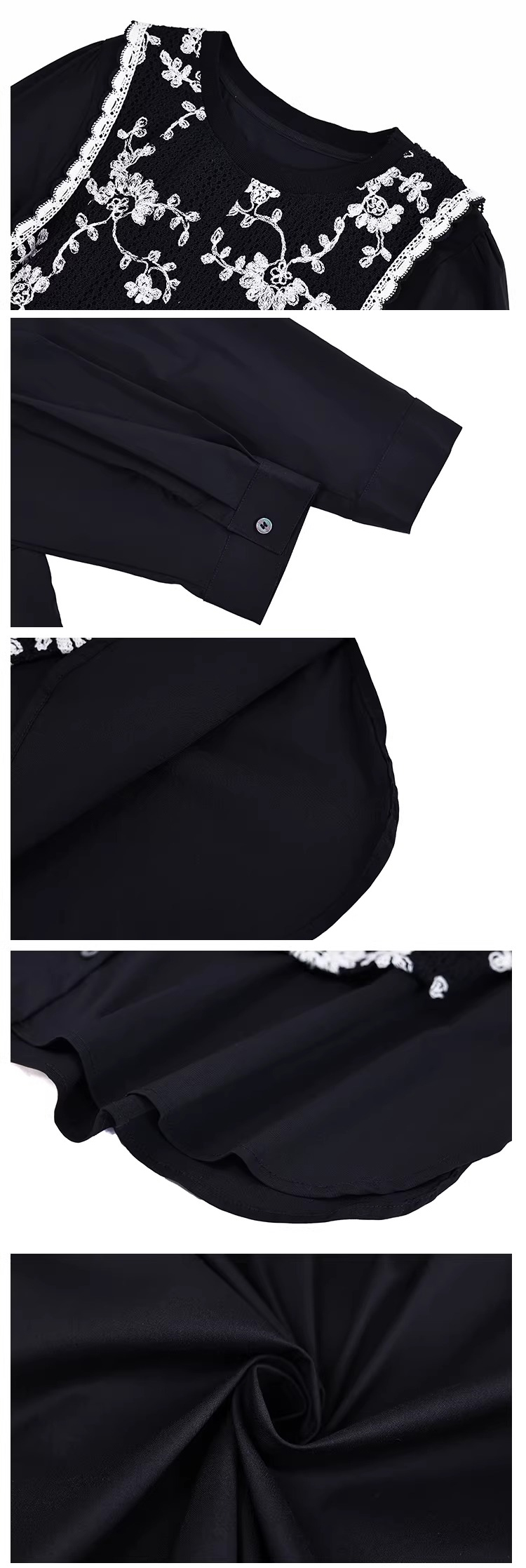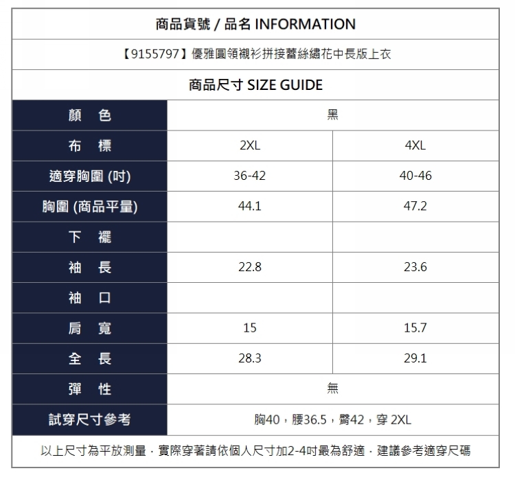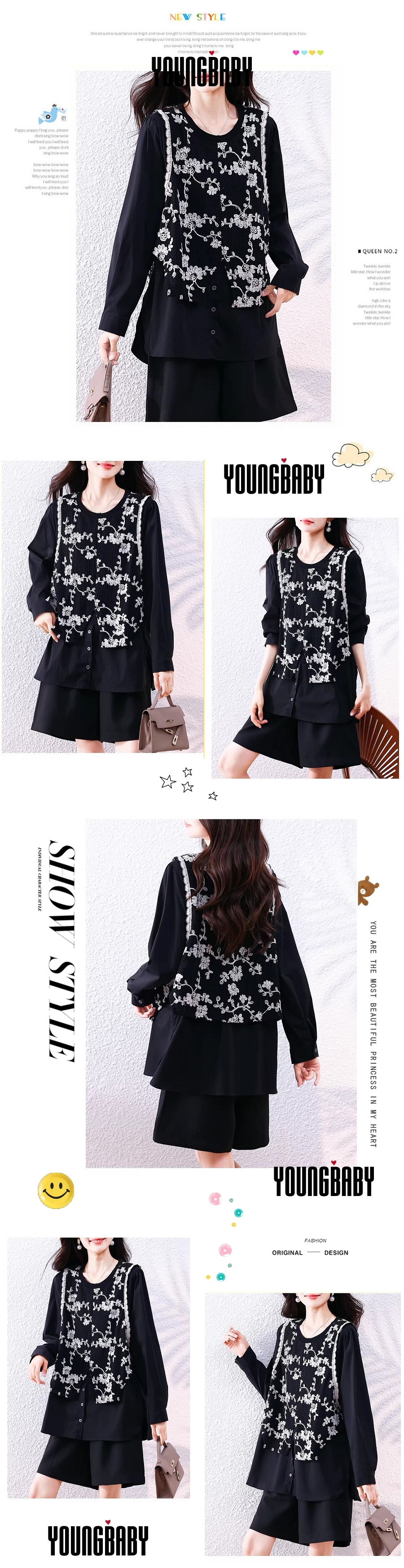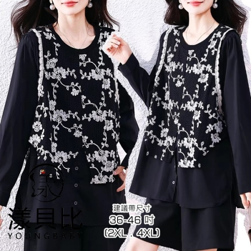 漾貝比【9155797】中大尺碼女裝 優雅圓領襯衫拼接蕾絲繡花中長版上衣(36-46)