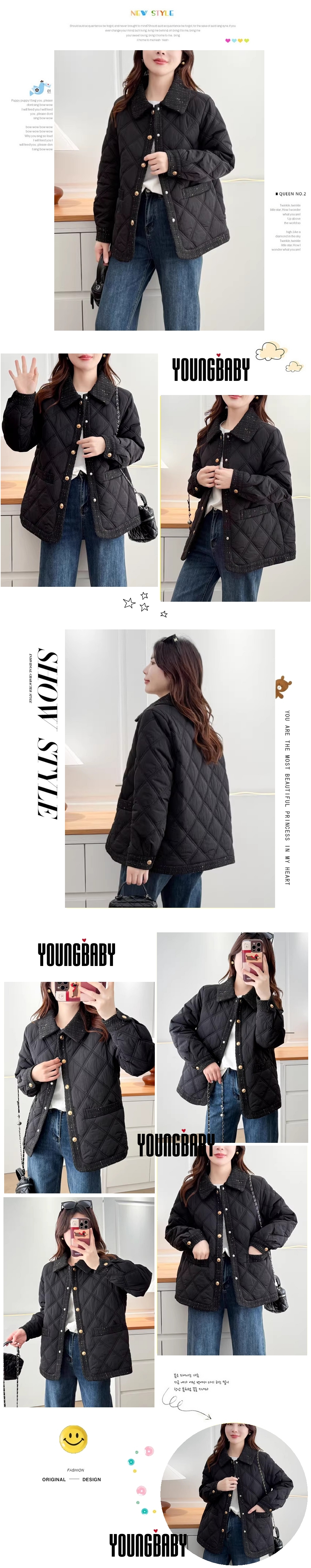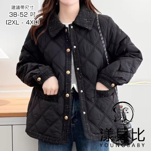 漾貝比【9155804】中大尺碼女裝 復古鑲邊菱格夾棉單排釦外套(38-52)