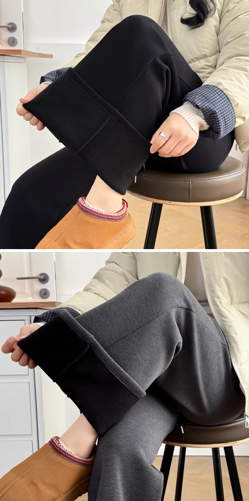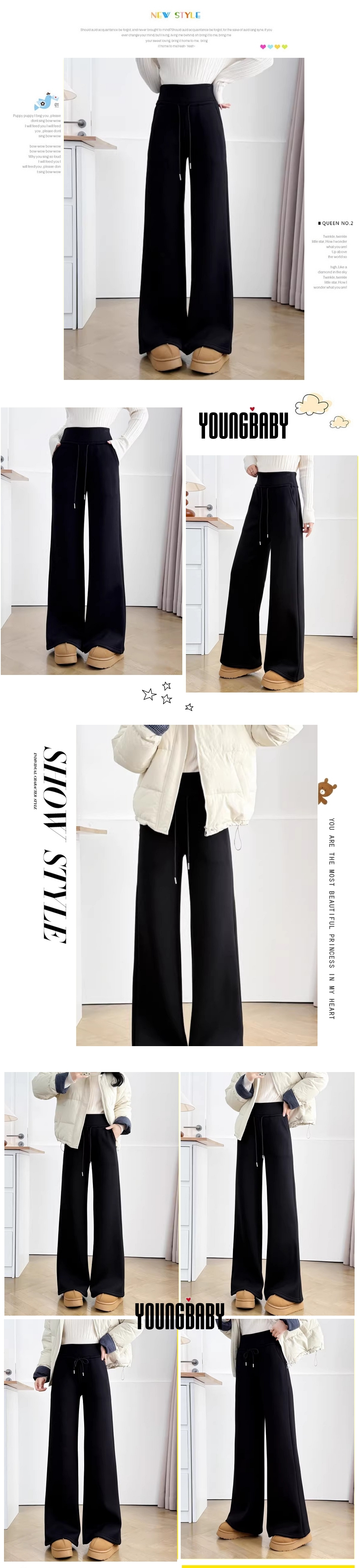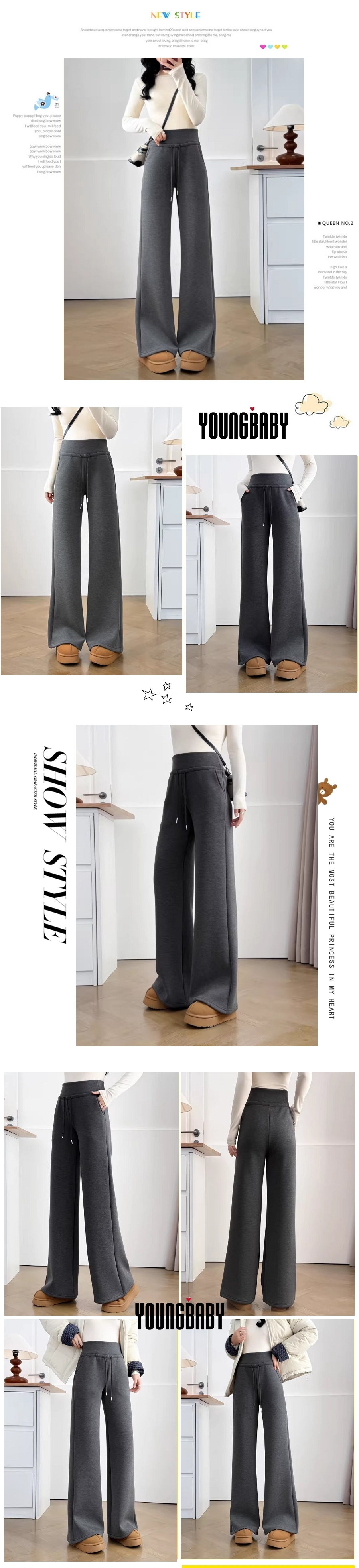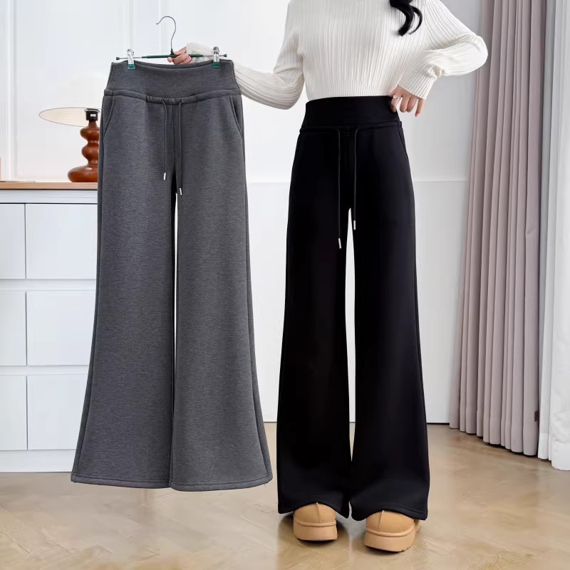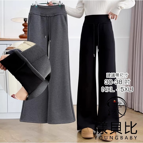 漾貝比【9155805】中大尺碼女裝 美式高腰抽繩直筒加絨加厚休閒褲(30-38)
