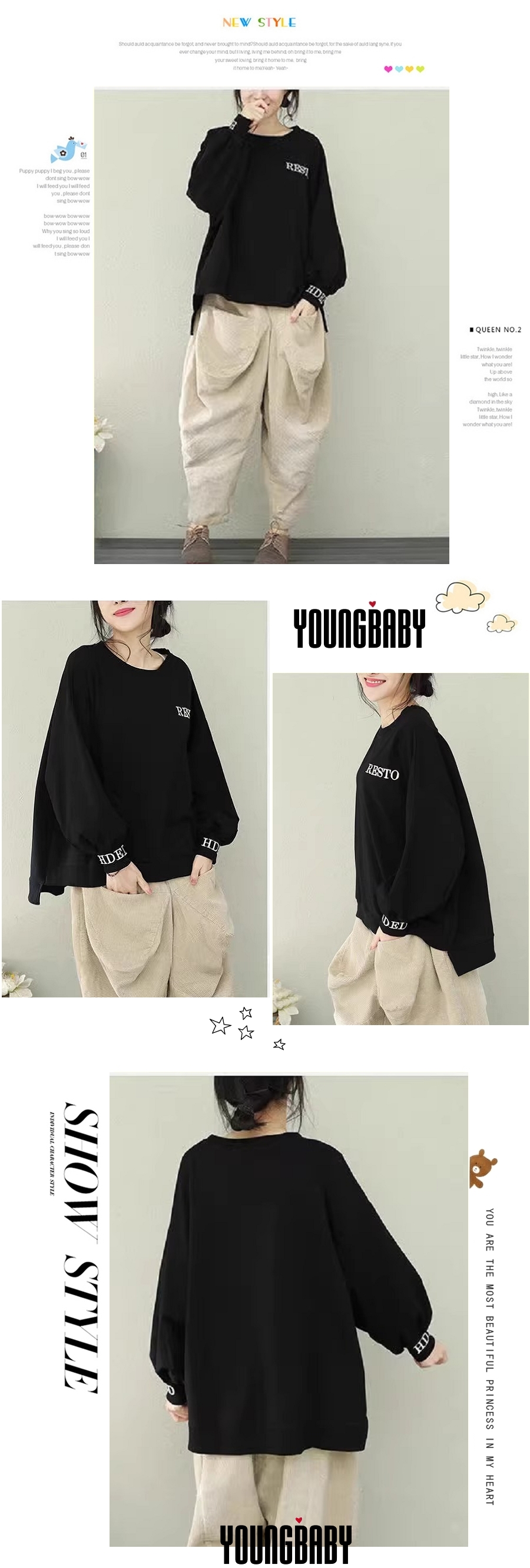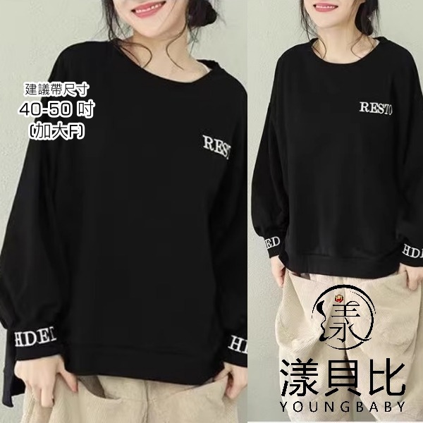 漾貝比【9155810】中大尺碼女裝 袖口領口英文印刷慵懶風織衣上衣(40-50)