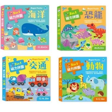 京采 3合1磁力拼圖:海洋(25.30.42片),恐龍(20.25.30片)交通(12.16.20片) 動物(9.12.16片) 大醬童書專賣店