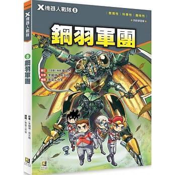 大醬童書專賣店 X機器人戰隊出動! 透過最酷炫的科學知識,為你揭開機器人的奧祕!   機器昆蟲大軍來襲!X探險隊嚴陣以待!   小尚、大勇和阿寶前往深山,尋找八鐵騎之一的金太羽。然而,對方卻設下各種陷阱和出動機器昆蟲軍團,處處為難他們。不願輕易放棄的X探險隊努力克服難關,只為說服金太羽重返重機戰隊。此時,魔裝之刃也伸出了魔爪......   *適讀年齡:國小中高年級以上 本書特色   看漫畫學知識!   只要學習3步驟,趣味漫畫+驚險故事=開啟知識之門,培養小小科學家!   STEP 1情境學習∣教育性★★★★★   圖像式漫畫結合生動可愛的人物和驚險刺激的故事編排,加深小朋友對於科學知識的理解和如何運用在生活中,激發他們對自然與科學的好奇心。而書中團隊合作的故事,則可培養小讀者們建立勇於挑戰與冒險的精神,藉此養成體貼他人的個性。   STEP 2知識專區∣科學性★★★★★   設有「X戰隊小百科」單元,藉由X機器人戰隊隊員的生動對話和淺顯易懂的文字,來介紹陸海空的大型機器,以及潛盾機、自卸車、露天採礦車、戰略運輸機、太空梭運輸車、超級航空母艦等超炫科學知識,讓小朋友有系統的學習。   STEP 3學習單∣學習延伸性★★★★★   書末所附學習單,是由臺北市天母國小自然老師專為本書設計,主要以故事情節來設計問題,帶著小讀者們探索更多的知識。而且測驗活潑有趣,可以讓他們從中了解學習成果和獲得樂趣。 作者介紹 作者簡介 李國靖   2010年加入角川平方,參與《X機器人戰隊》的策劃、分鏡、插圖與編劇。 周文煌   2011年加入角川平方,參與《X機器人戰隊》的分鏡與編劇。 繪者簡介 氧氣工作室   由張偉森、周文杰、Wilson、周文煌、Megame、陳澤峰、小村、CHOO、Iris等人組成。團員各有專長,負責分鏡、草稿、下墨、人物造型、背景、插圖等職責。 審訂者簡介 羅文杰   天母國小教師,喜歡帶著學生動手玩科學,體驗探索的樂趣。個性勇於挑戰與創新,常在堅持的態度後,有創意的新發現。