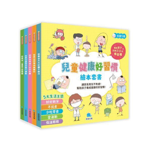 大醬童書專賣店 德聯大化企業社20036033 作者: 檸檬夸克   繪者: 姚冠華 出版社:京采文教事業有限公司  訂 出版日期:2024/04/24 語言:繁體中文 定價:1400元 《兒童健康好習慣繪本》系列內容包含 愛護眼睛 愛運動 好好刷牙 少吃零食 好好吃飯 5個主題,來幫助孩子養成良好的生活習慣   用幽默有趣的故事講道理,幫助孩子改掉小小的壞習慣;故事後附有寫給孩子和家長的小知識,讓孩子養成好習慣,讓家長育兒不焦慮,和孩子一起了解有趣的身體,養成自律、健康的好習慣吧!   本套書內容包含5冊:   《如果你把零食當飯吃》 剛買的零食又被含含吃光了! 媽媽總是說少吃點零食,含含怎麼忍得住?! 該吃飯了,含含卻說自己一點也不餓……   《如果你一直看平板電腦》 手機、電視和平板電腦都有一種魔力, 會讓人不知不覺的著了迷。 怎麼辦,軒軒已經連續看了2小時了……   《如果你天天吃糖不刷牙》 含含愛吃糖,可是最不喜歡刷牙了, 每次都是隨隨便便刷個兩下, 含含不知道,在深夜裡,等她睡著之後, 一群細菌在她的牙齒上開啟了狂歡派對……   《如果你挑食不好好吃飯》 含含可真挑食呀!不愛吃綠花椰菜,不愛吃青椒; 說紫菜像保鮮膜,說帶殼的蝦會扎肚子…… 挑食的含含,能愛上吃飯嗎?   《如果你總是坐著不運動》 圓圓是男孩軒軒屁股上的一個脂肪細胞。 有一天,圓圓受夠了屁股上的擁擠, 它決定換個地方待著。 這趟奇妙的身體之旅, 讓圓圓明白了軒軒為什麼會長胖。   本書特色   1. 一套結合童趣與科學的健康繪本。 2. 故事後分別附有寫給大人、孩子的小知識。 3. 用生動有趣的圖畫和故事,代替父母嘮叨。   ISBN:9786267404126 叢書系列:兒童健康好習慣繪本系列 規格:平裝 / 240頁 / 25 x 25 x 4.5 cm / 普通級 / 初版 出版地:台灣 適讀年齡:3歲~10歲